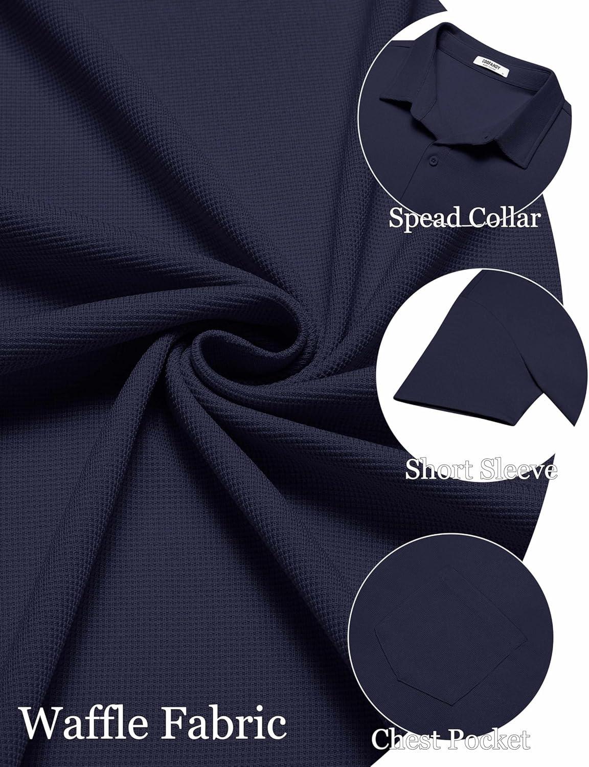 COOFANDY Men’s Short Sleeve Button Down Shirt Casual Summer Beach Shirt Waffle Knit Shirts Wrinkle Free Untucked Shirt(Deep Blue)