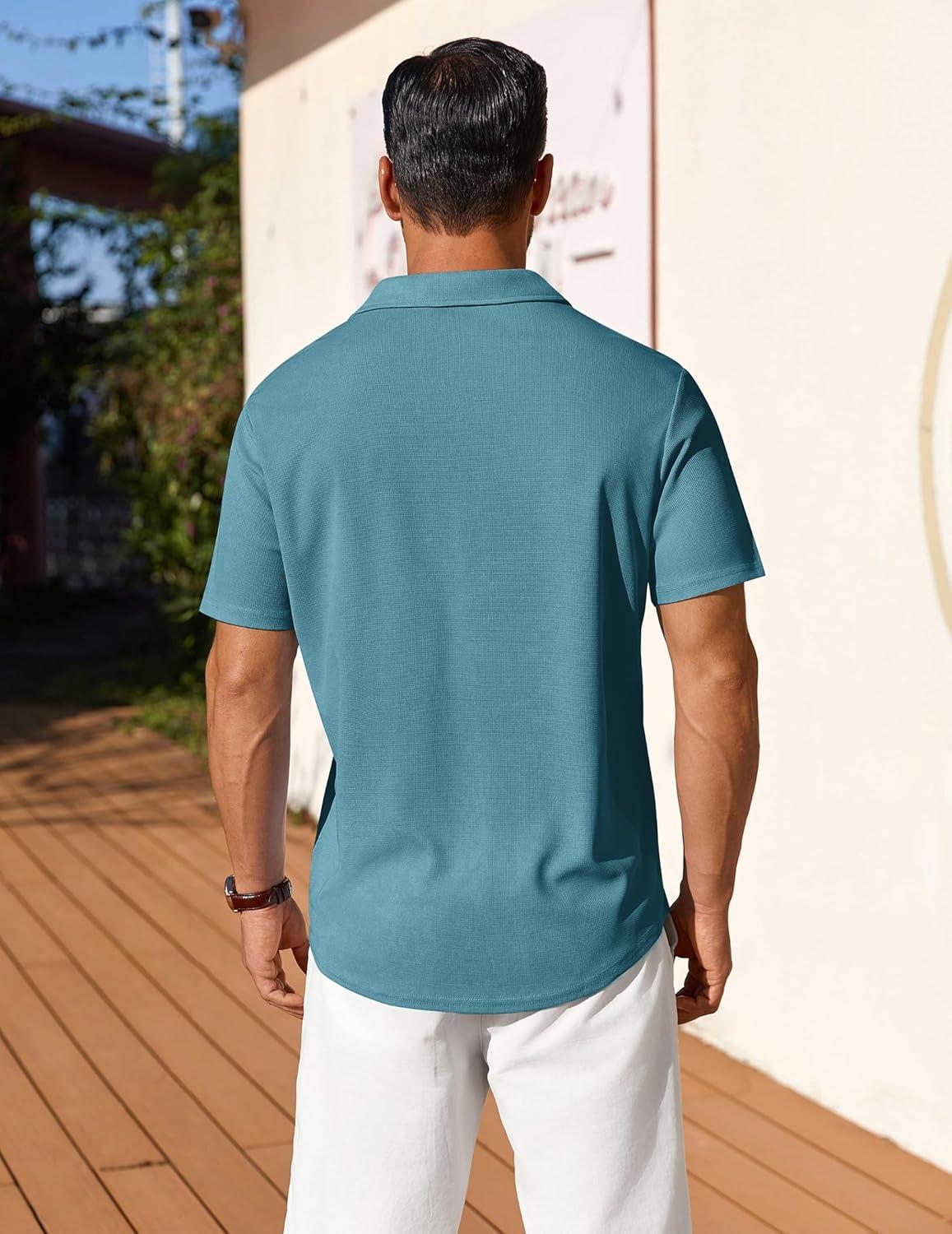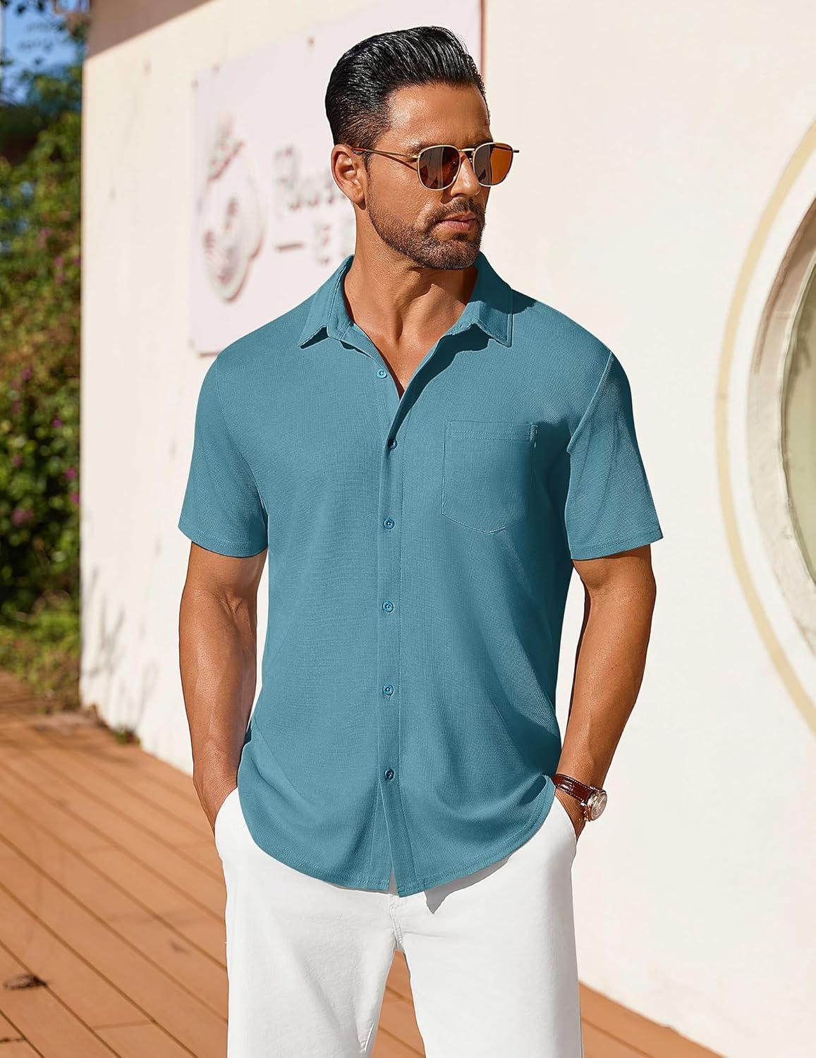 COOFANDY Men’s Short Sleeve Button Down Shirt Casual Summer Beach Shirt Waffle Knit Shirts Wrinkle Free Untucked Shirt(Peacock Blue)