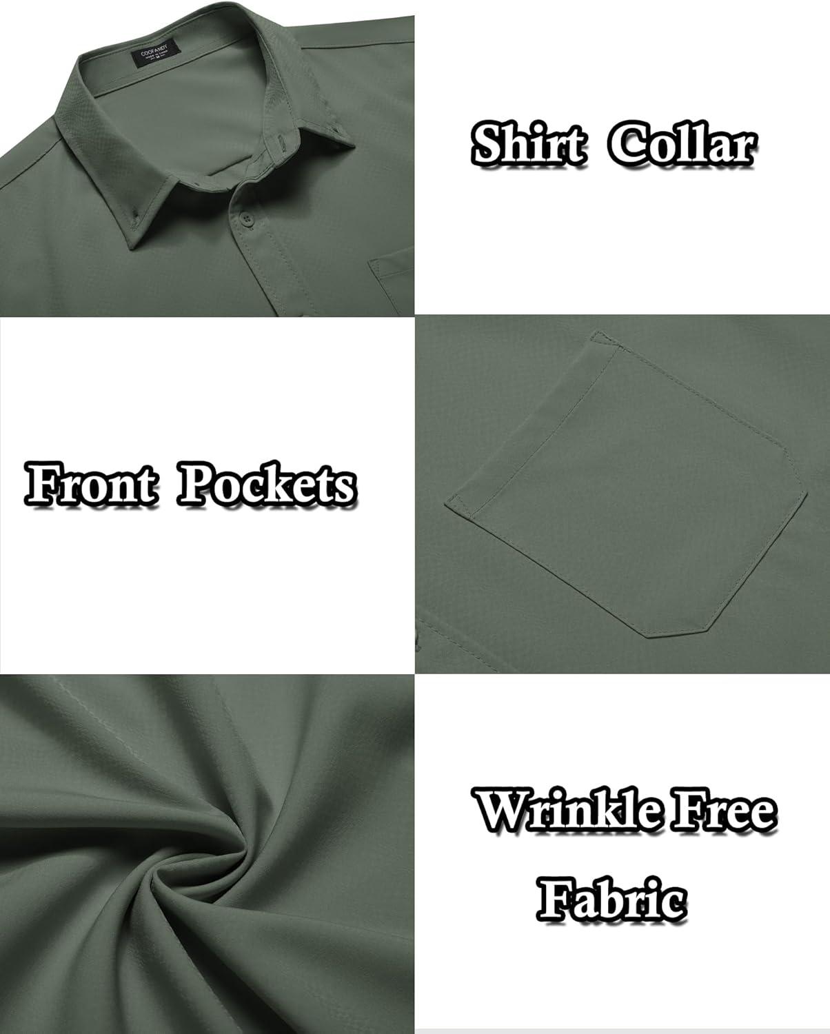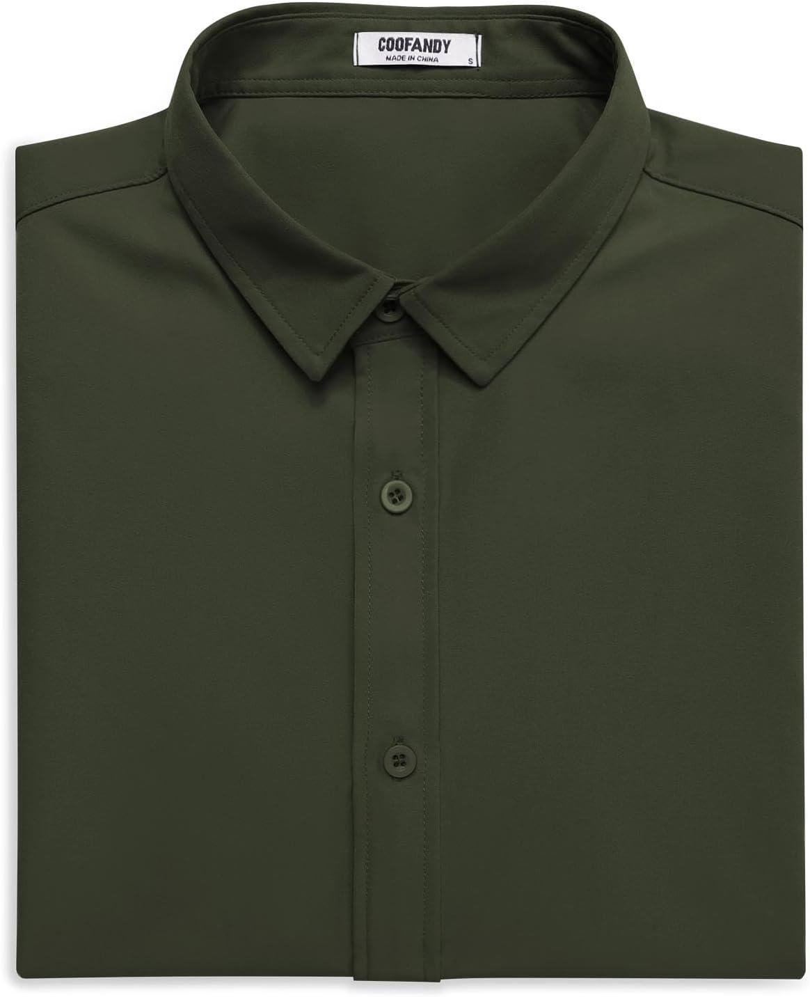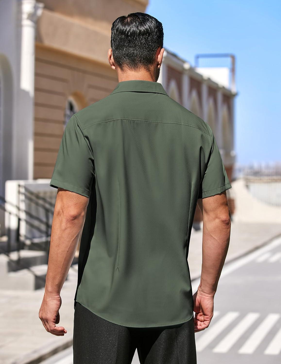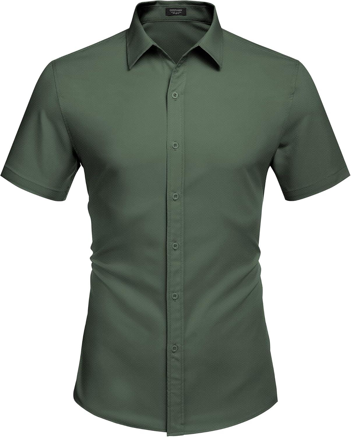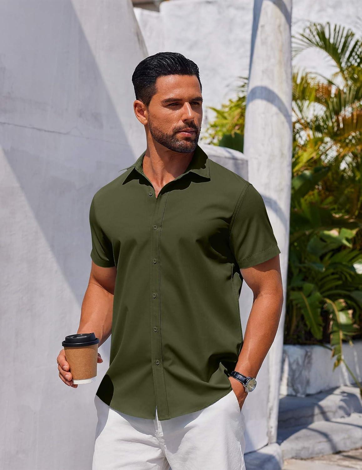 COOFANDY Men’s Short Sleeve Button Down Shirts Casual Summer Dress Untucked Shirts(Armygreen)
