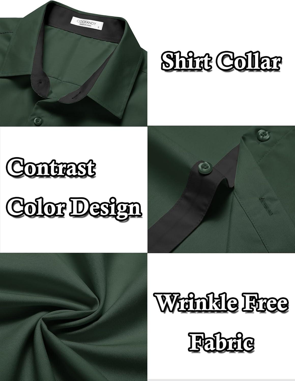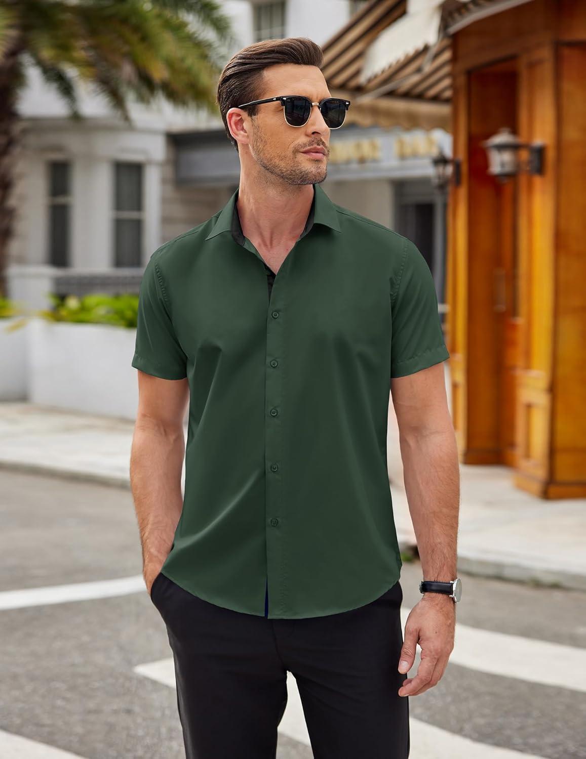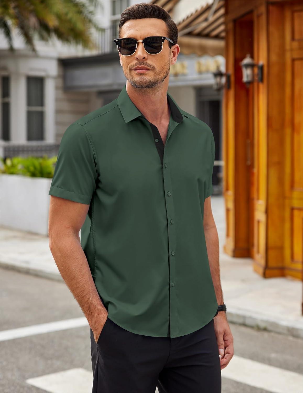 COOFANDY Men’s Short Sleeve Button Down Shirts Casual Summer Dress Untucked Shirts(Dark Green)