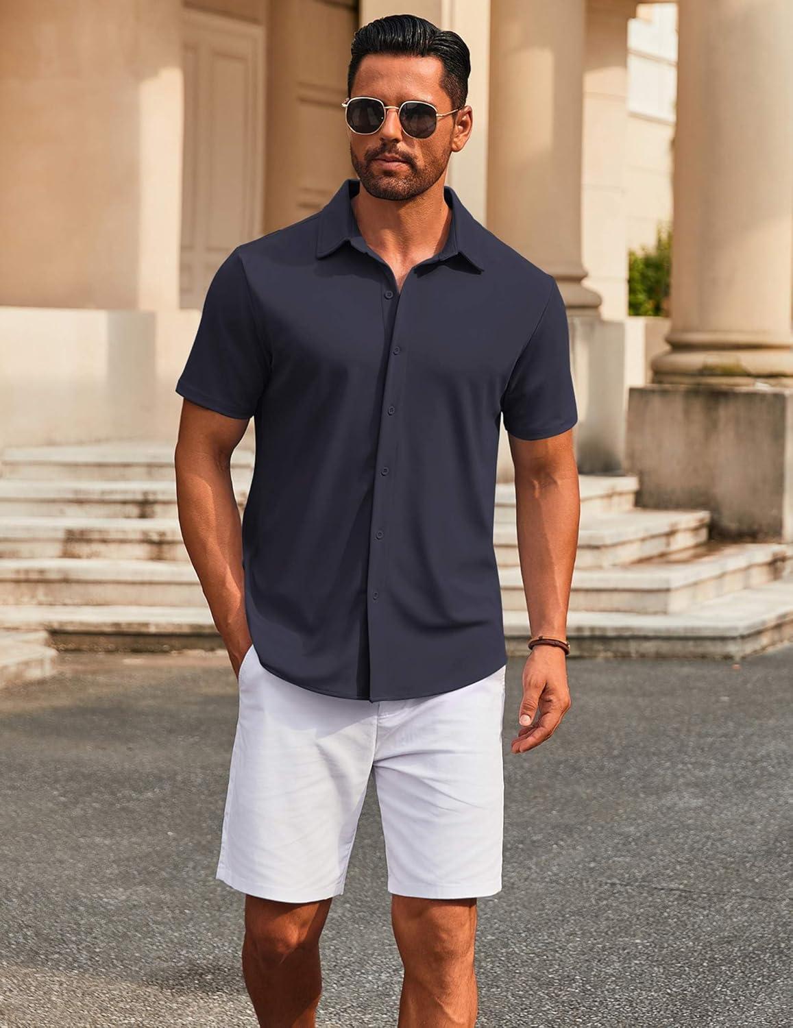 COOFANDY Men’s Short Sleeve Button Down Shirts Casual Summer Dress Untucked Shirts(Deep Blue)