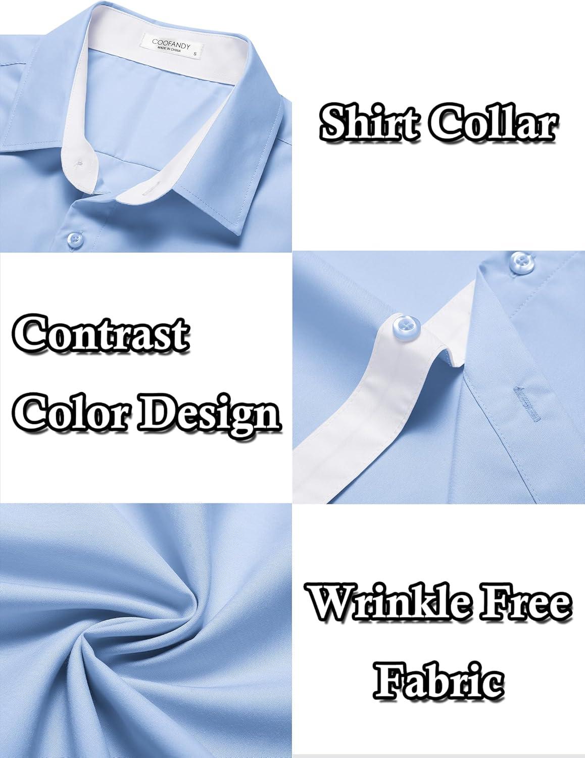 COOFANDY Men’s Short Sleeve Button Down Shirts Casual Summer Dress Untucked Shirts(Clear Blue)