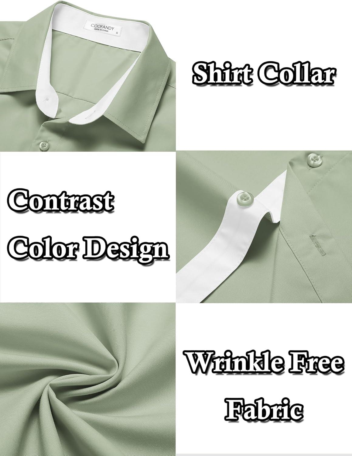 COOFANDY Men’s Short Sleeve Button Down Shirts Casual Summer Dress Untucked Shirts(Light Green)
