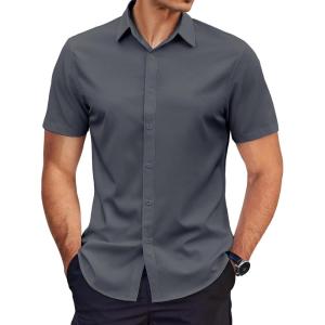 COOFANDY Men’s Short Sleeve Button Down Shirts Casual Summer Dress Untucked Shirts(Dark Grey)