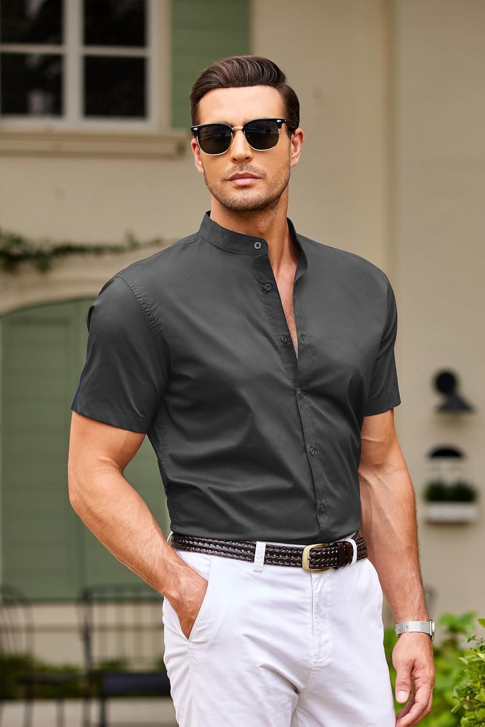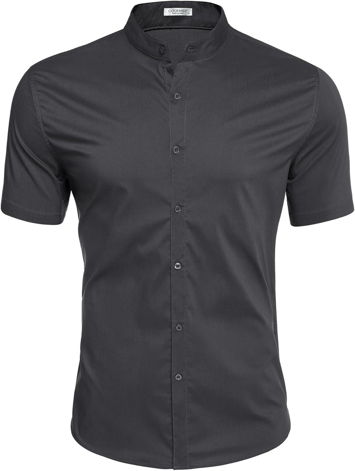 COOFANDY Muscle Fit Dress Shirts for Men Banded Collar Casual Button Down Shirts(Dark Grey)
