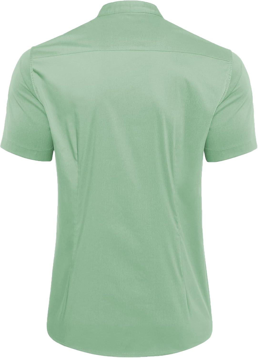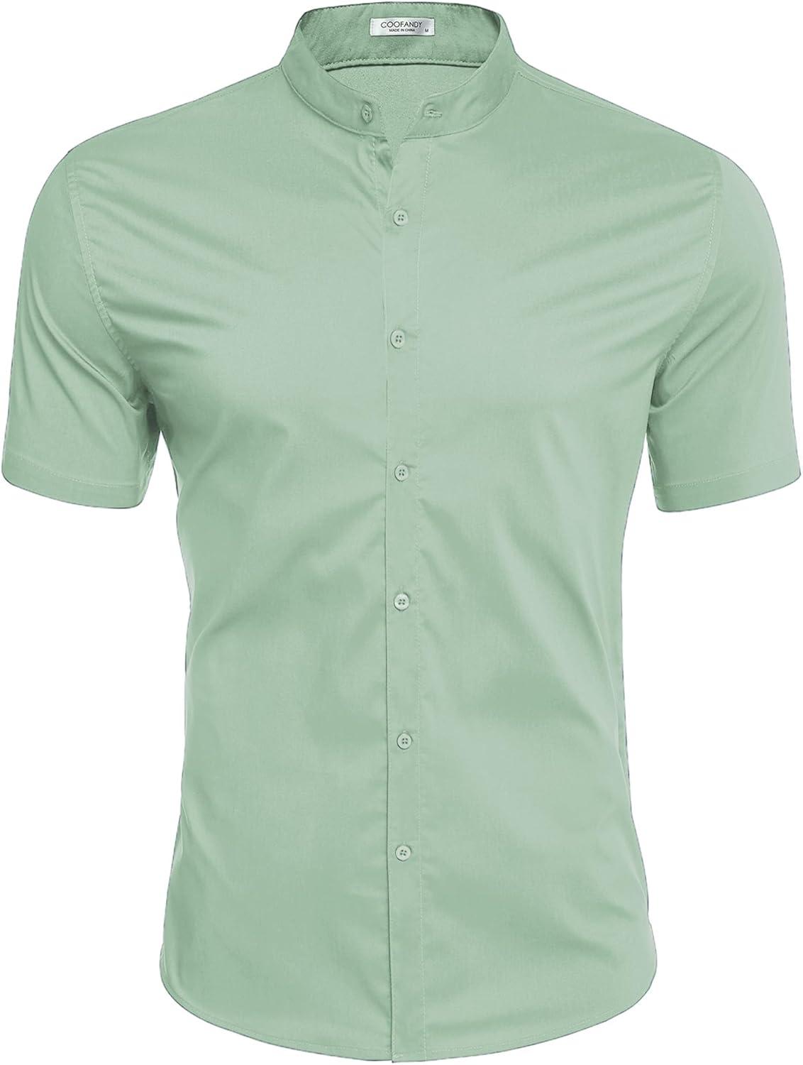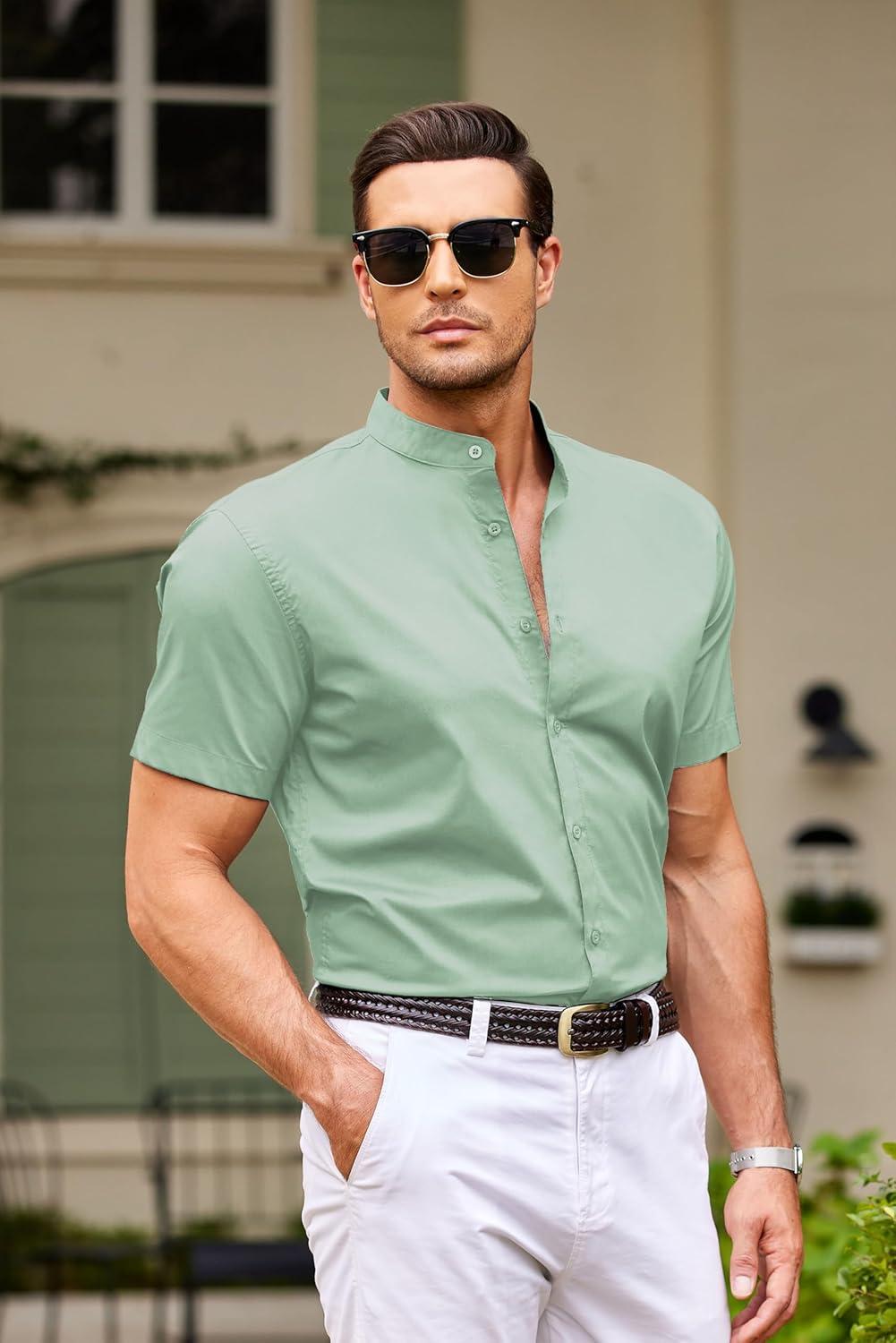 COOFANDY Muscle Fit Dress Shirts for Men Banded Collar Casual Button Down Shirts(Light Green)