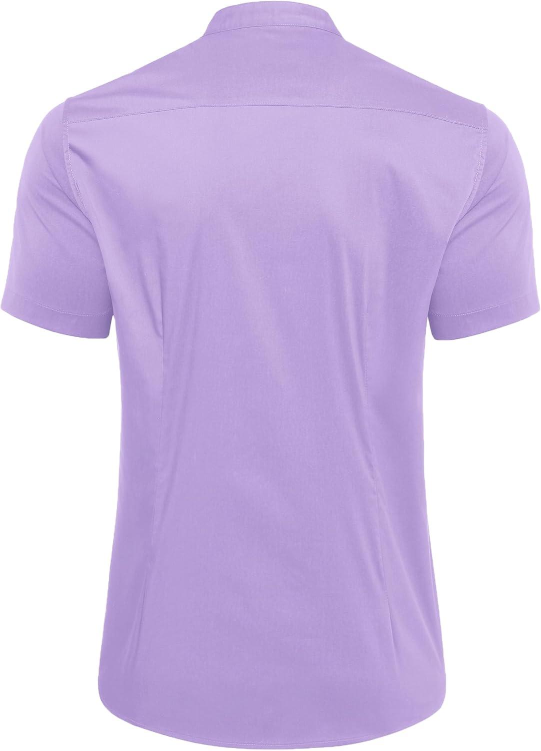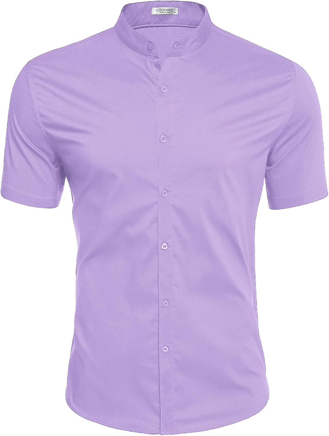COOFANDY Muscle Fit Dress Shirts for Men Banded Collar Casual Button Down Shirts(Lilac)