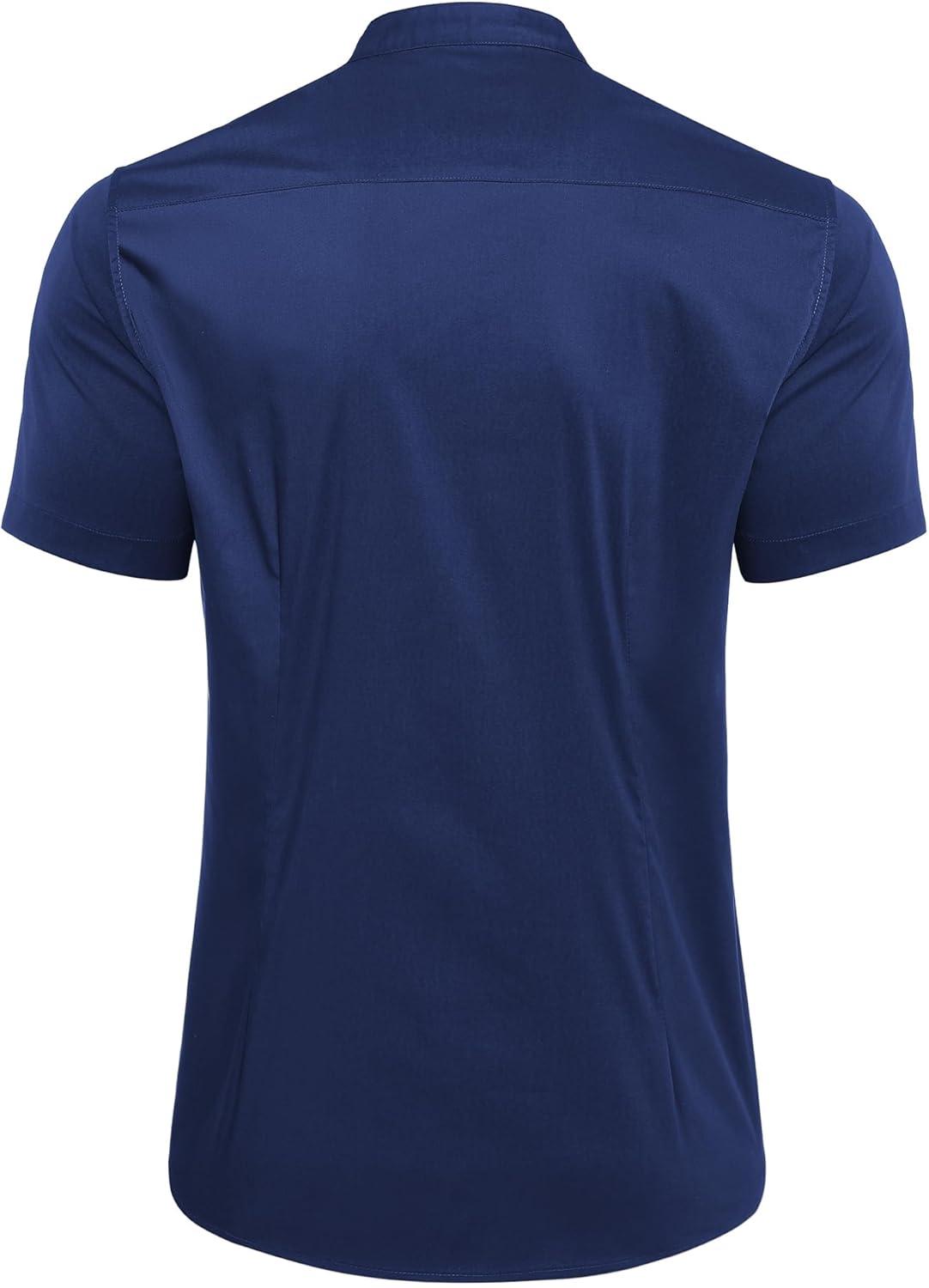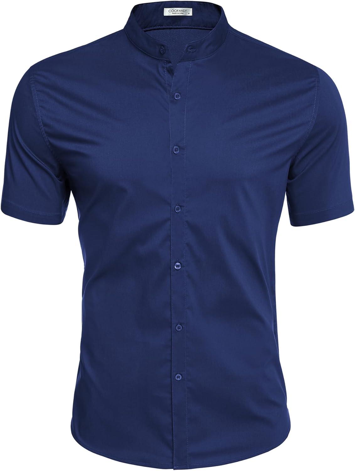 COOFANDY Muscle Fit Dress Shirts for Men Banded Collar Casual Button Down Shirts(Navy)