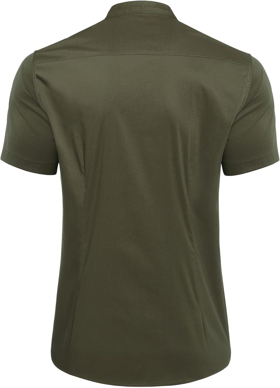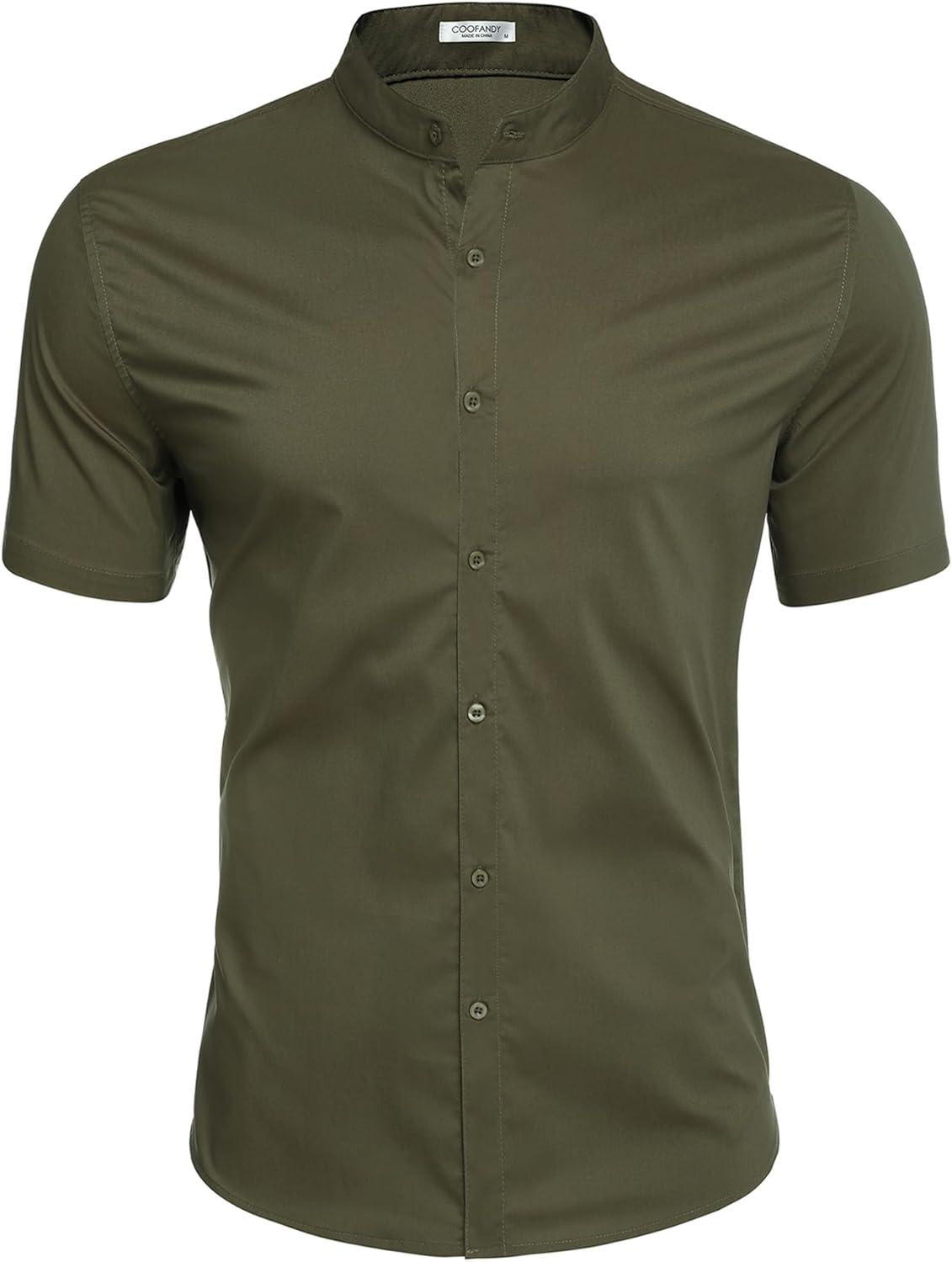 COOFANDY Muscle Fit Dress Shirts for Men Banded Collar Casual Button Down Shirts(Olive Green)