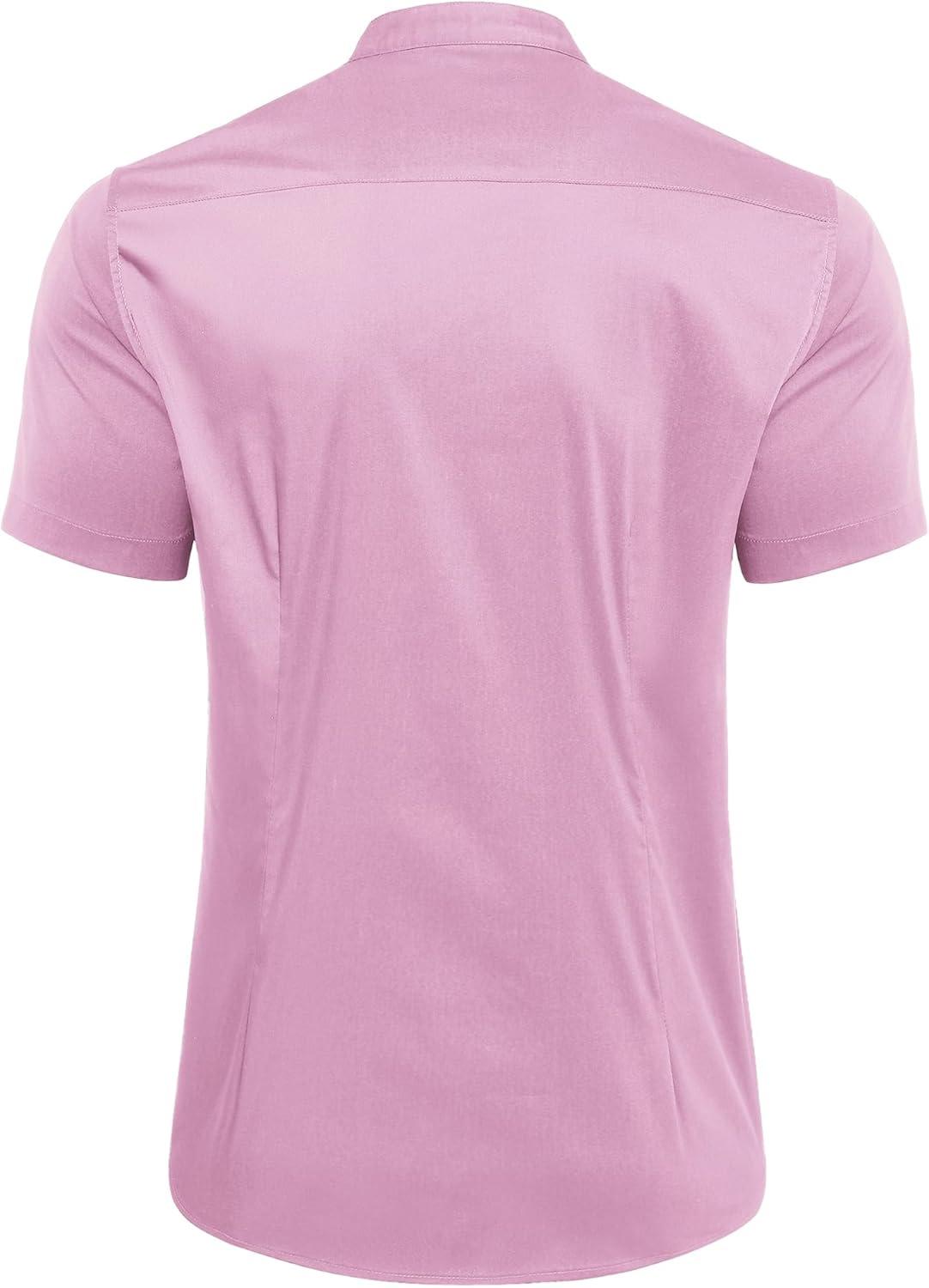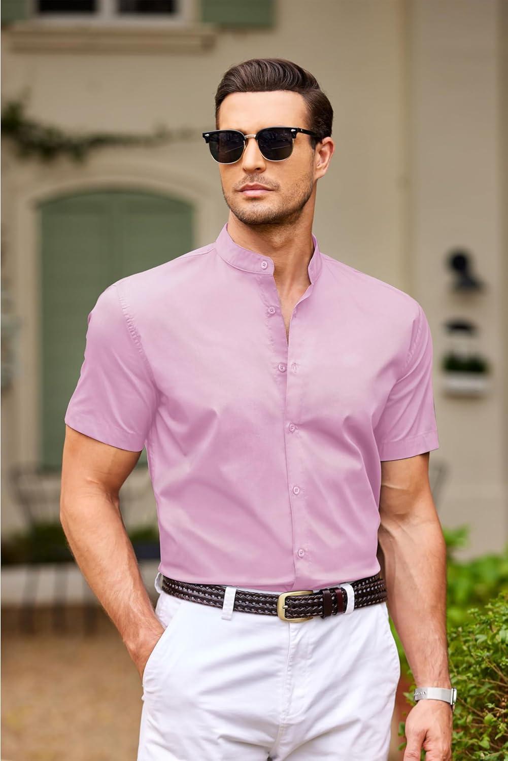 COOFANDY Muscle Fit Dress Shirts for Men Banded Collar Casual Button Down Shirts(Pink)