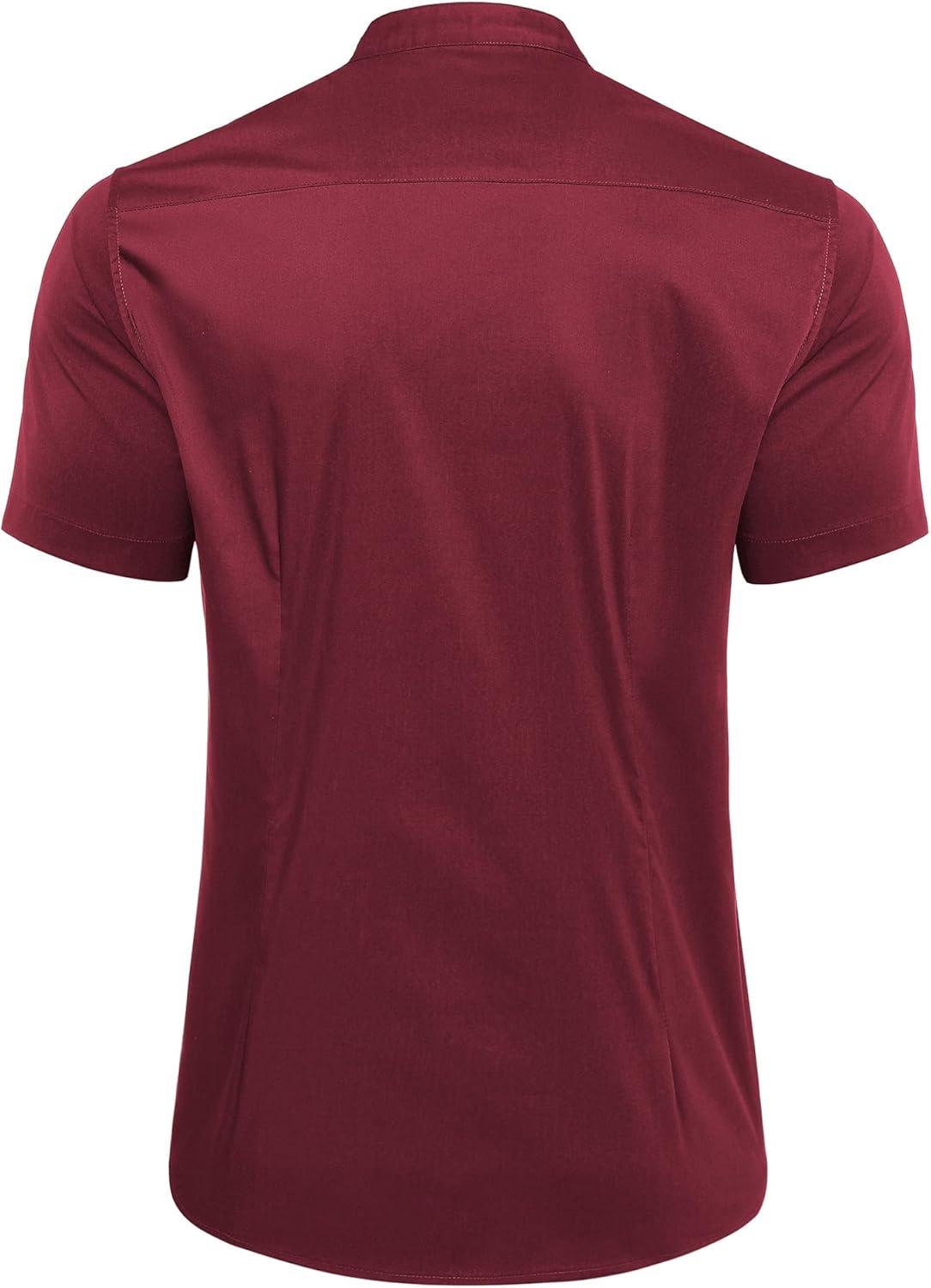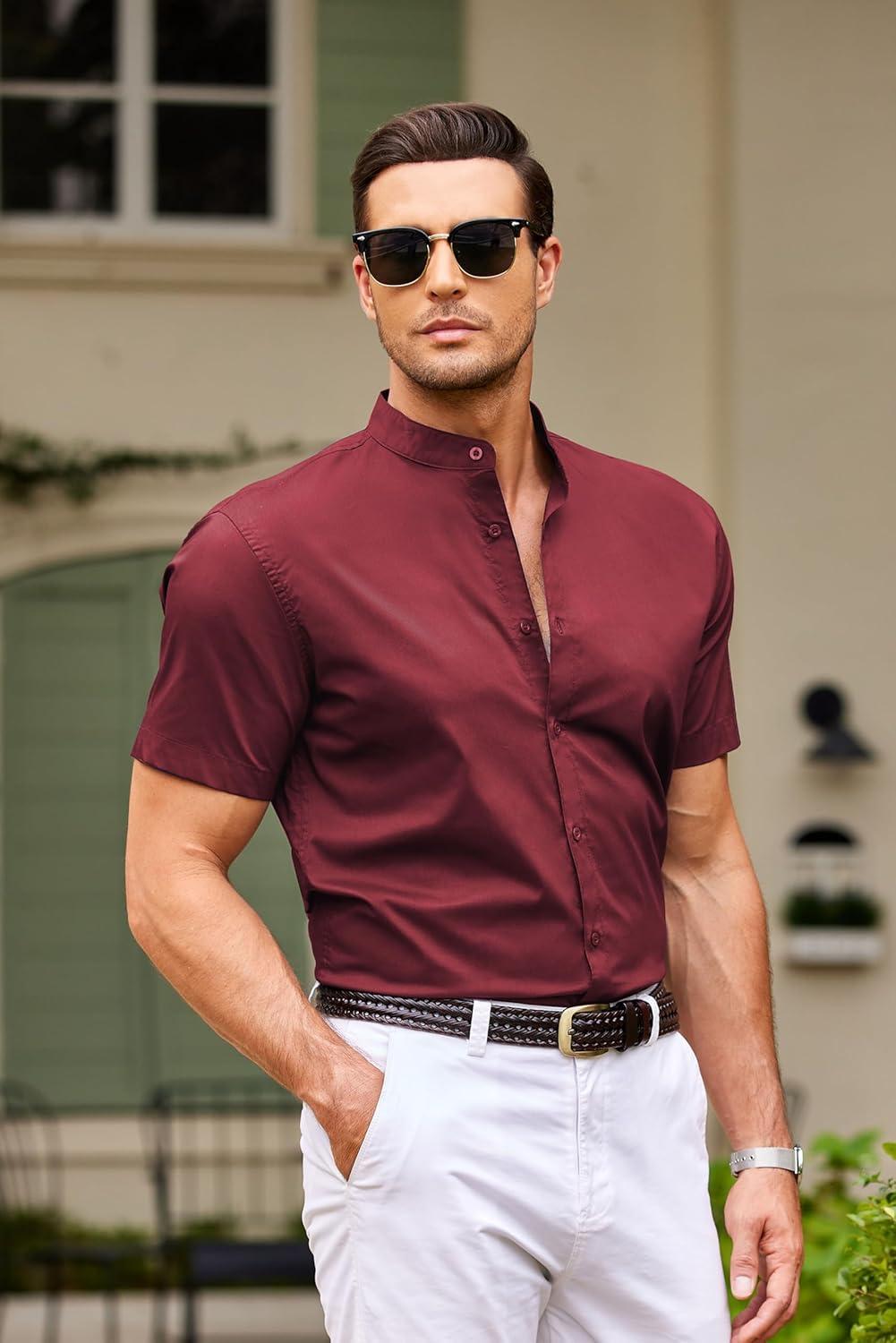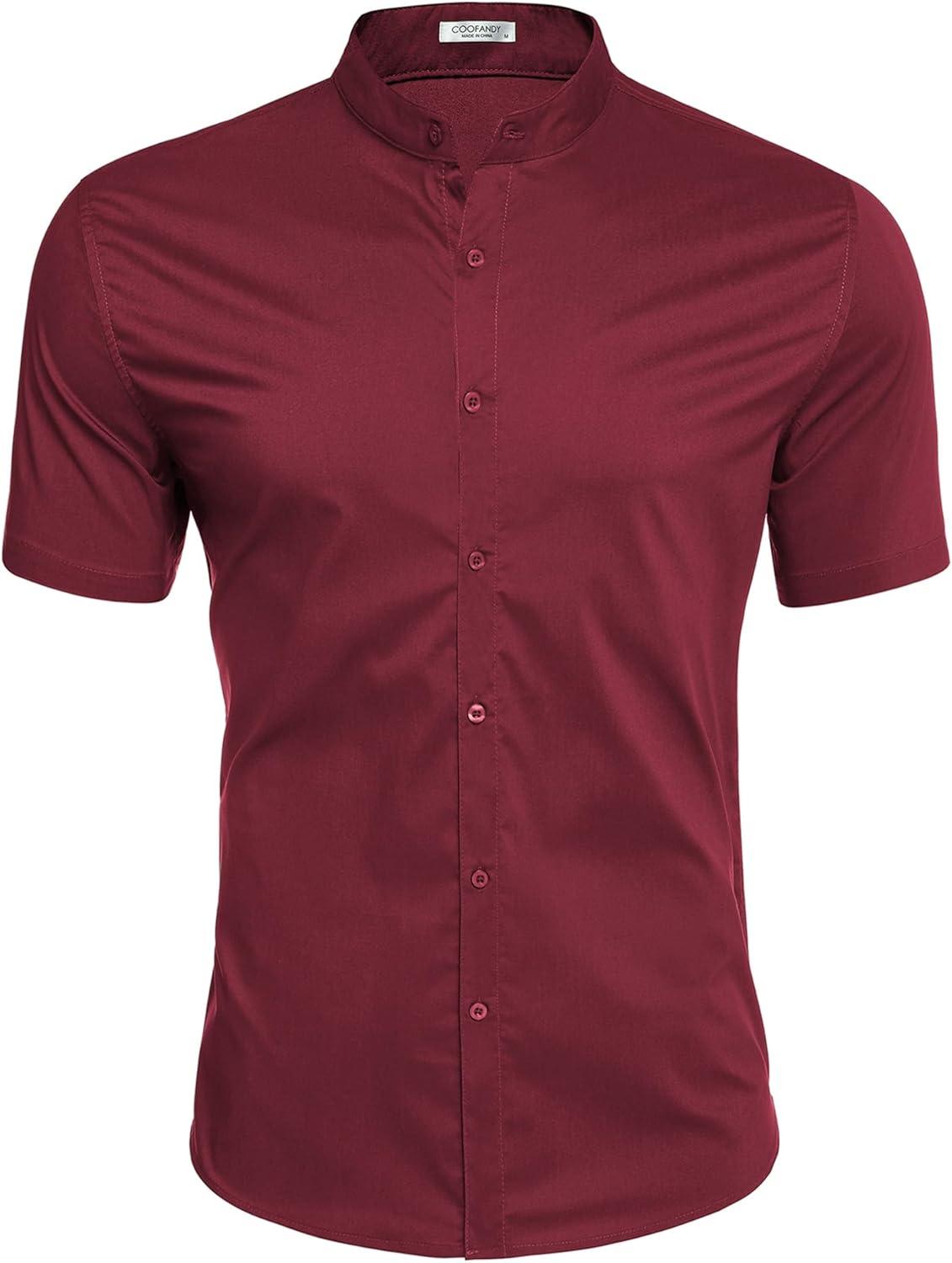 COOFANDY Muscle Fit Dress Shirts for Men Banded Collar Casual Button Down Shirts(Red)