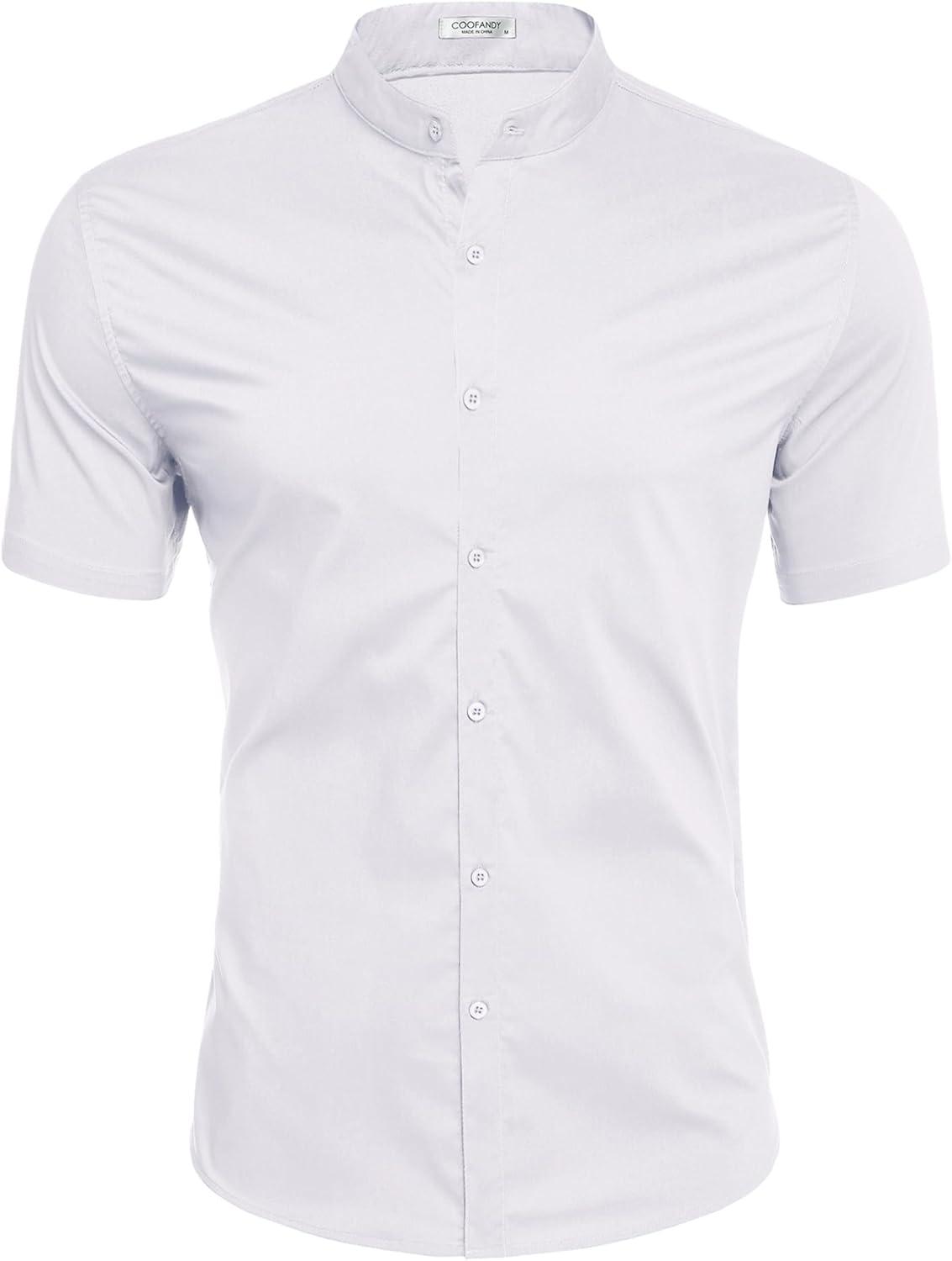 COOFANDY Muscle Fit Dress Shirts for Men Banded Collar Casual Button Down Shirts(White)
