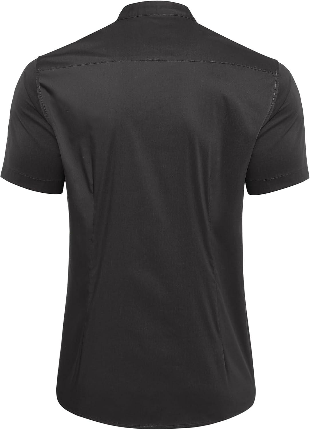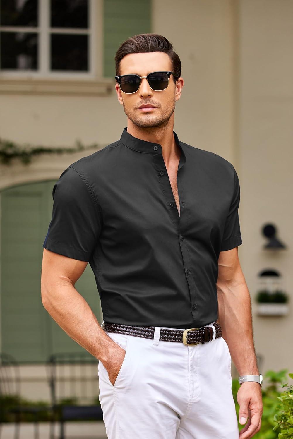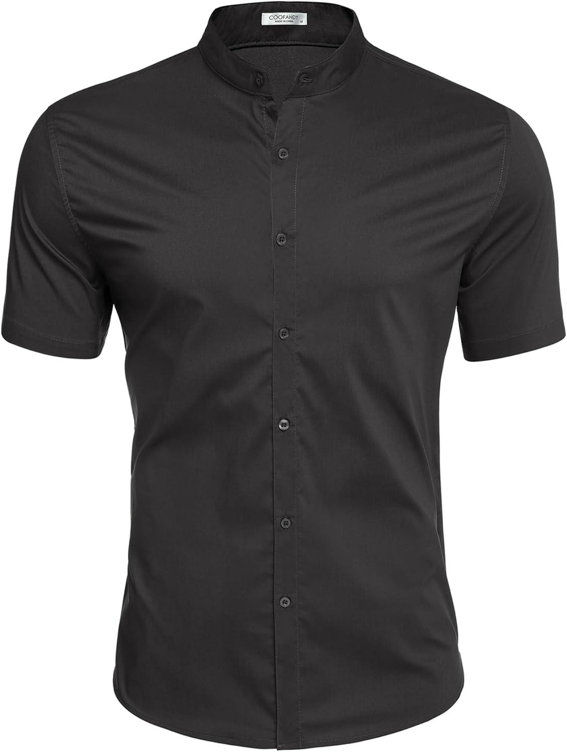 COOFANDY Muscle Fit Dress Shirts for Men Banded Collar Casual Button Down Shirts(Black)
