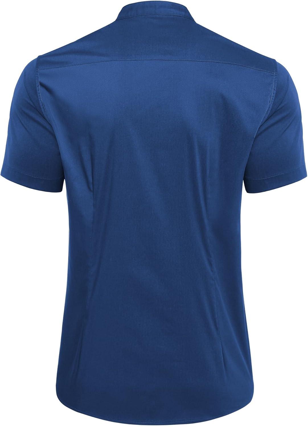 COOFANDY Muscle Fit Dress Shirts for Men Banded Collar Casual Button Down Shirts(Navy)