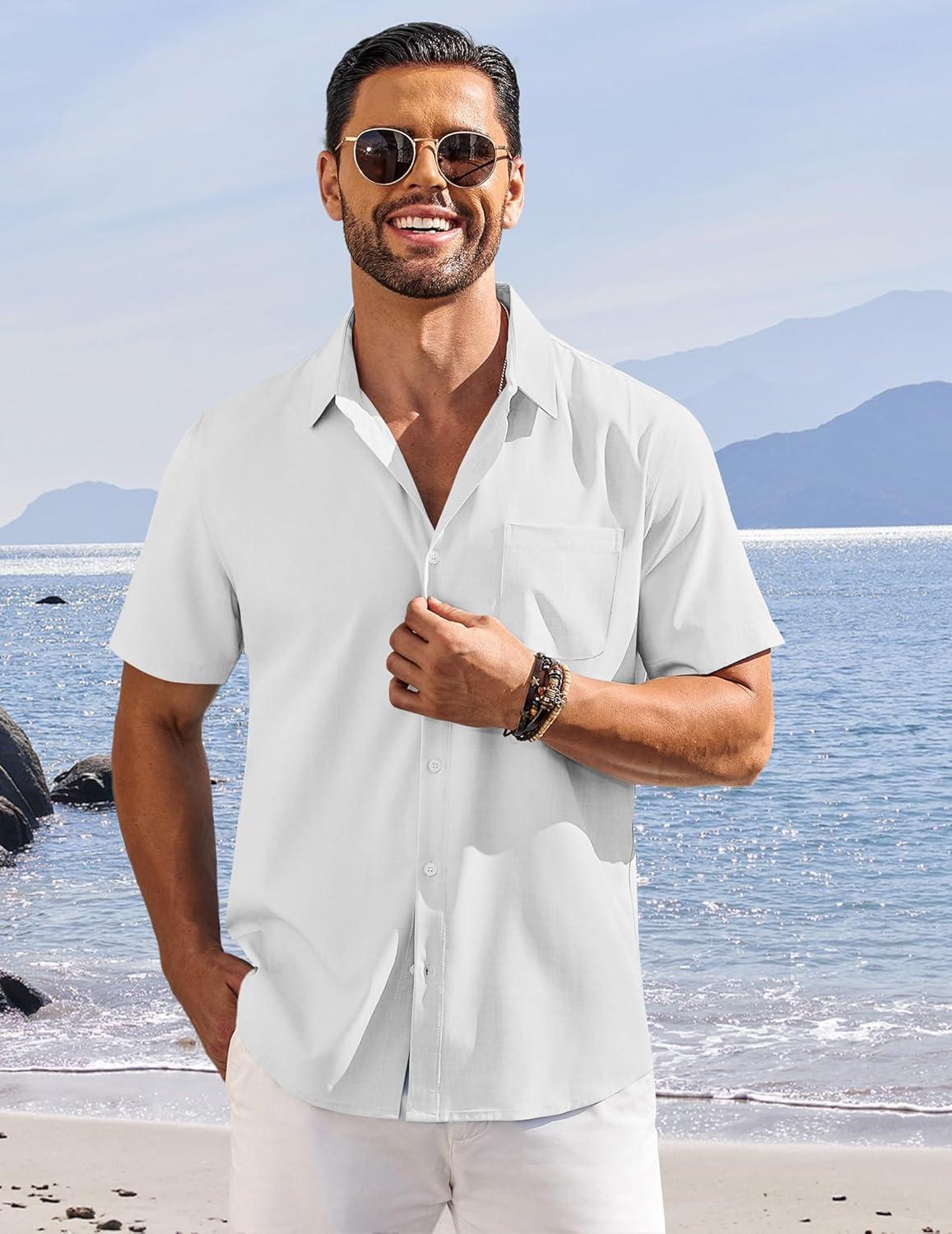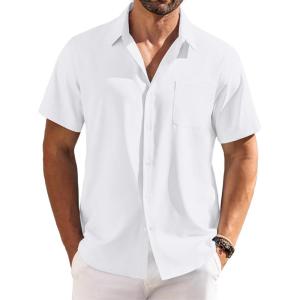 COOFANDY Shirts for Men Short Sleeve Button Down Shirt Casual Summer Beach Shirts(White)