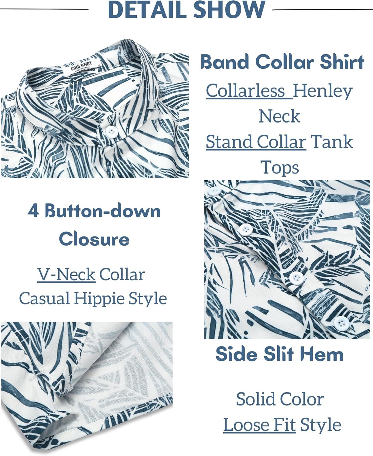 COOFANDY Sleeveless Beach Shirts for Men Summer Tank Shirts Casual Henley Tank Top(Blue Leaves)