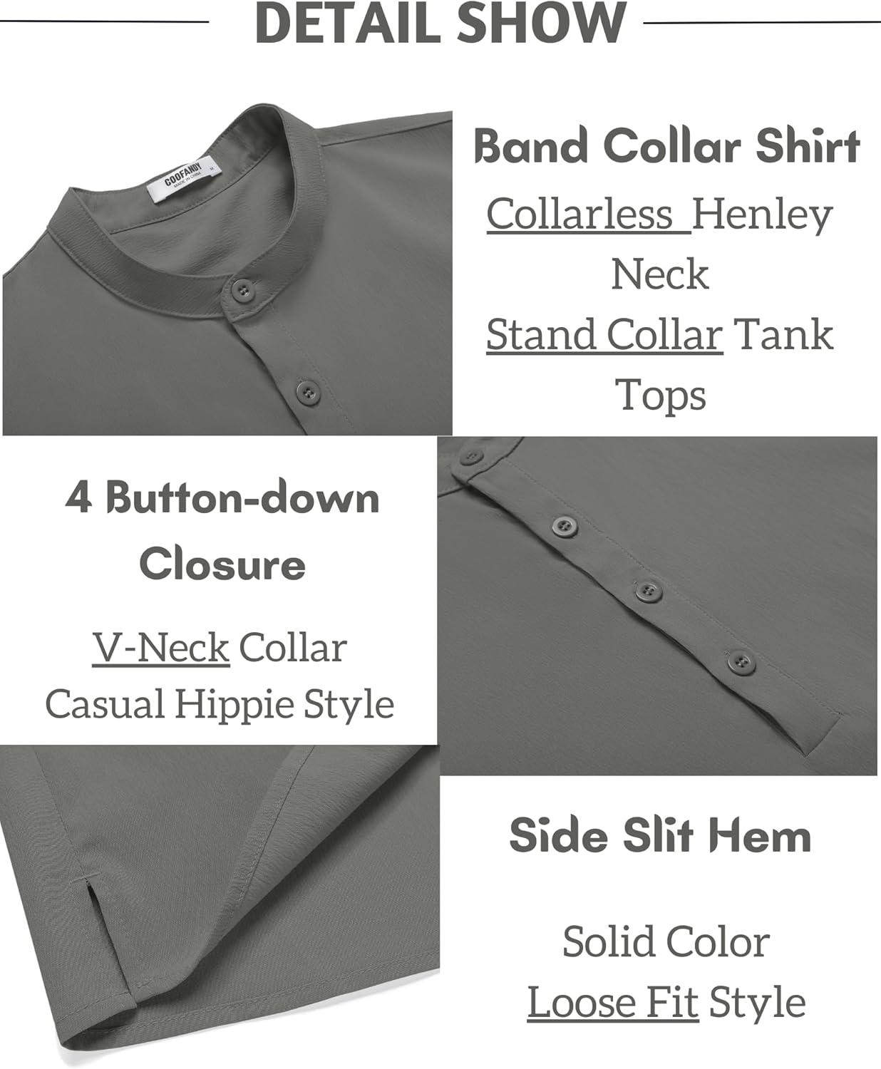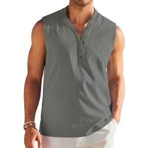 COOFANDY Sleeveless Beach Shirts for Men Summer Tank Shirts Casual Henley Tank Top(Light Grey)