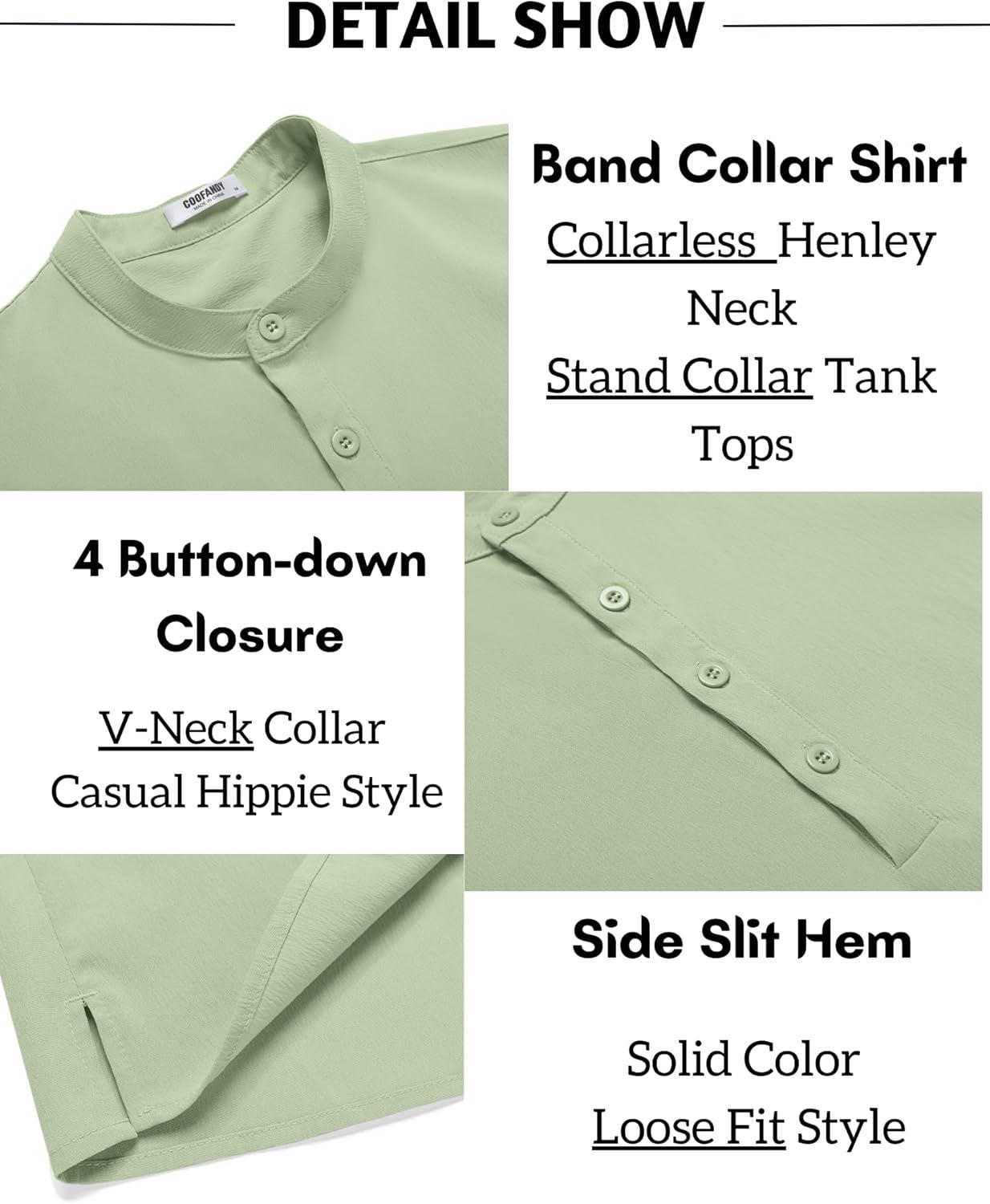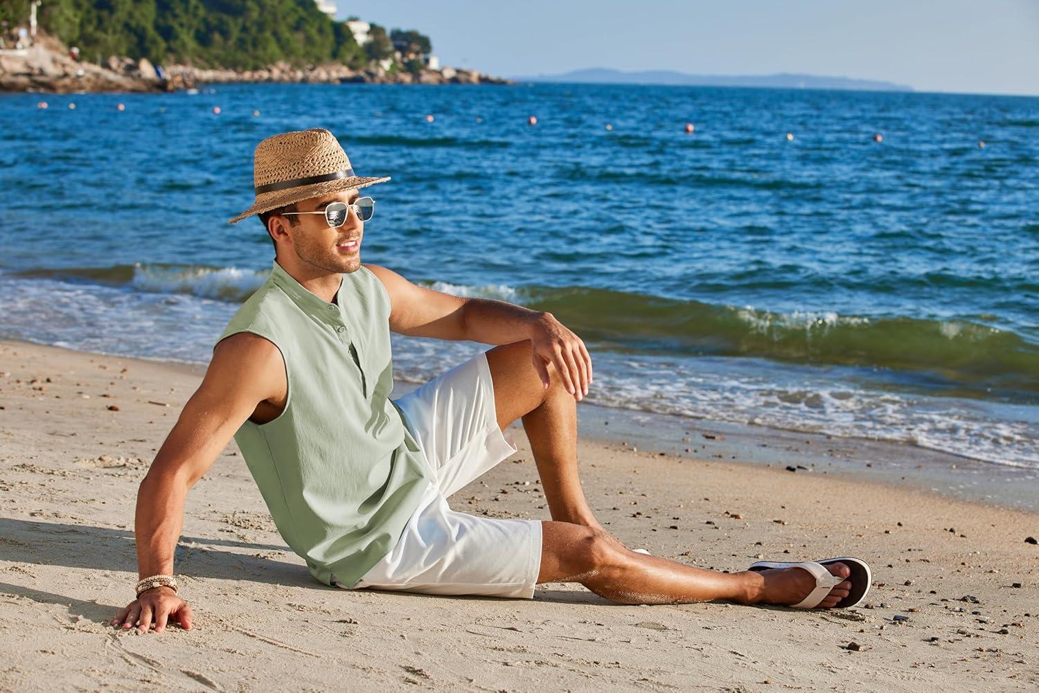COOFANDY Sleeveless Beach Shirts for Men Summer Tank Shirts Casual Henley Tank Top(Lgiht Green)