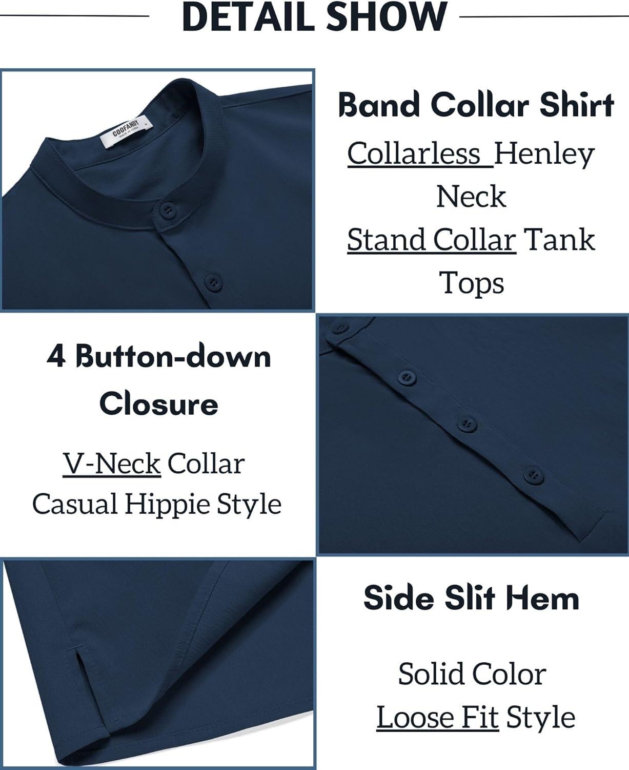 COOFANDY Sleeveless Beach Shirts for Men Summer Tank Shirts Casual Henley Tank Top(Navy Blue)