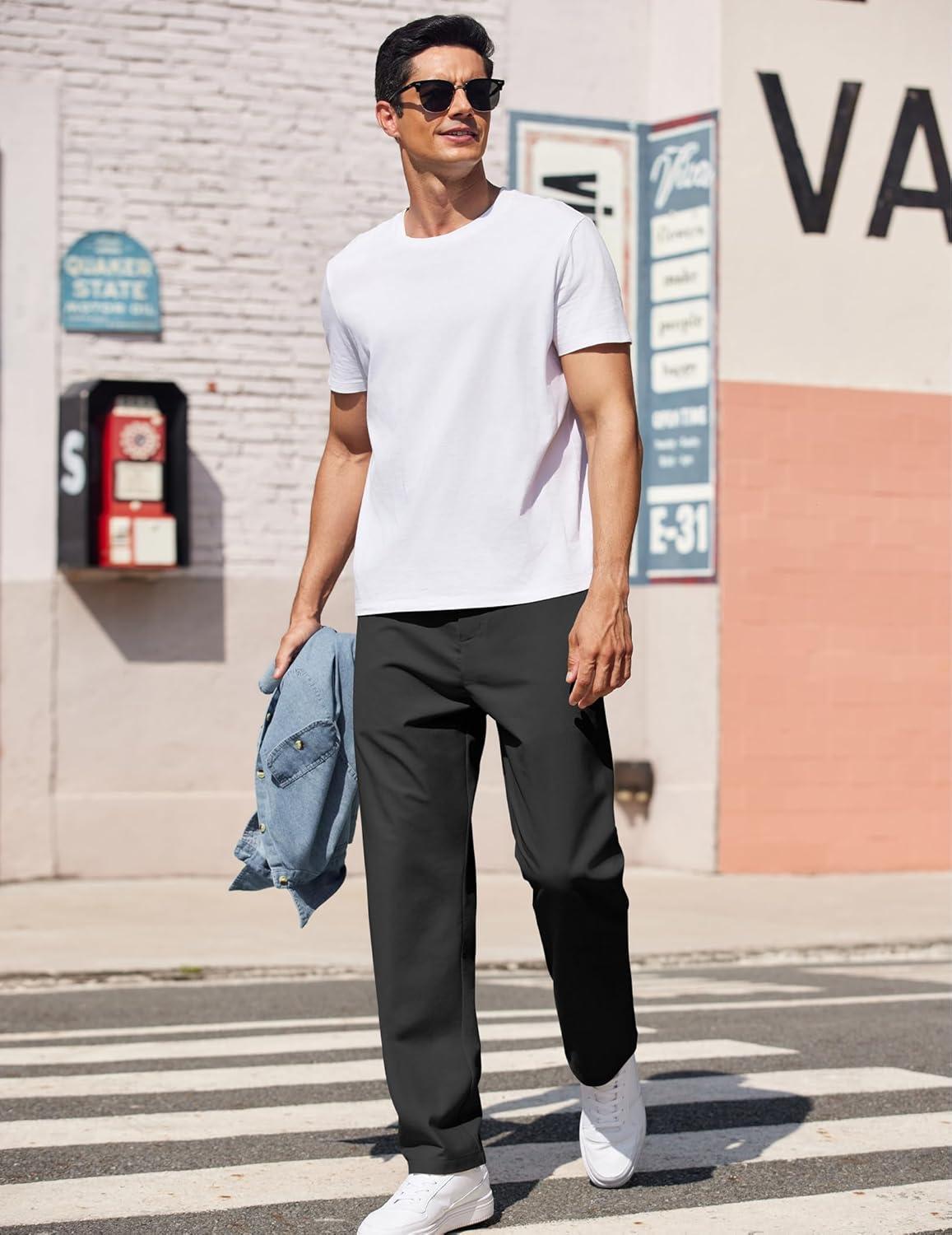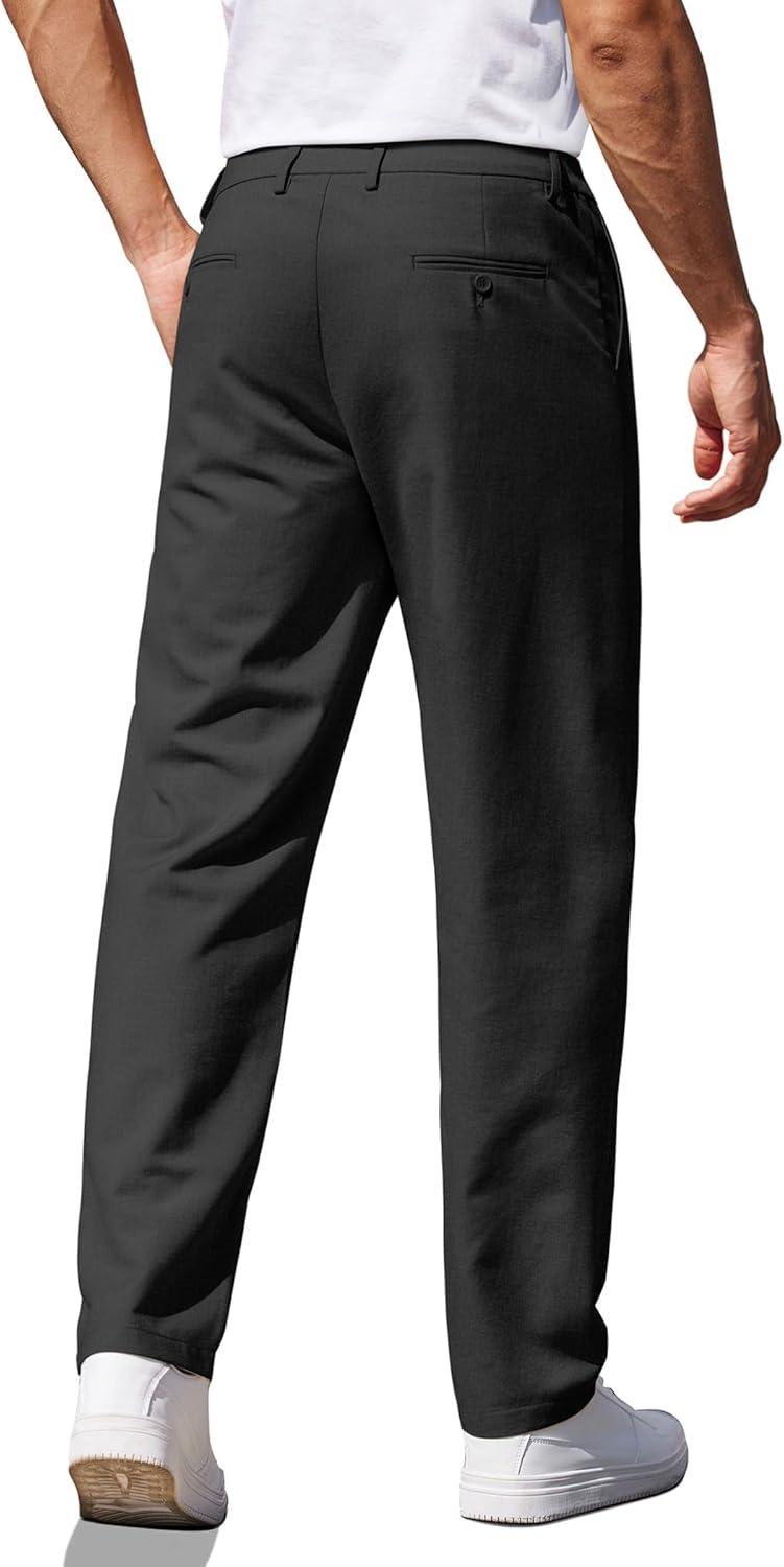 COOFANDY Men’s Casual Pants Classic Fit Straight Legs Flat Front Twill Pants(Black)