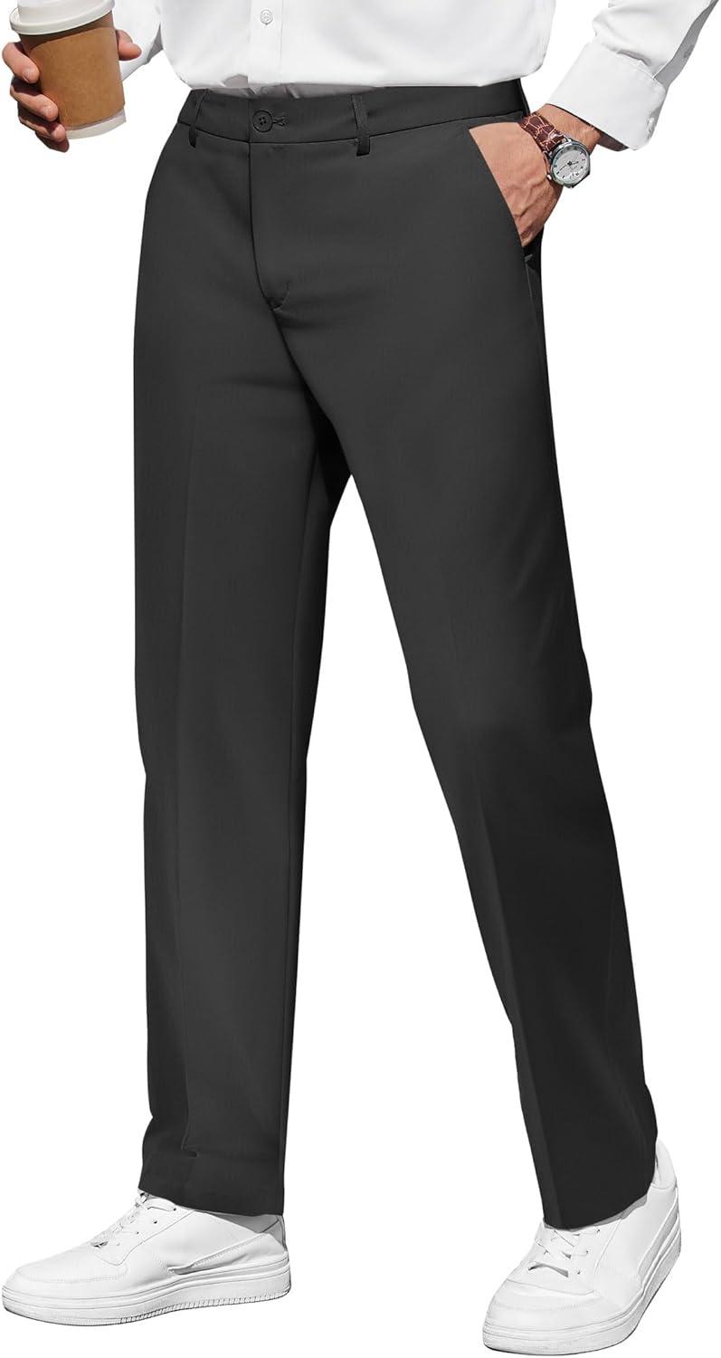 COOFANDY Men Classic Fit Dress Pant Casual Flat Front Pant Expandable Waist Suit Pant(A-dark Grey)