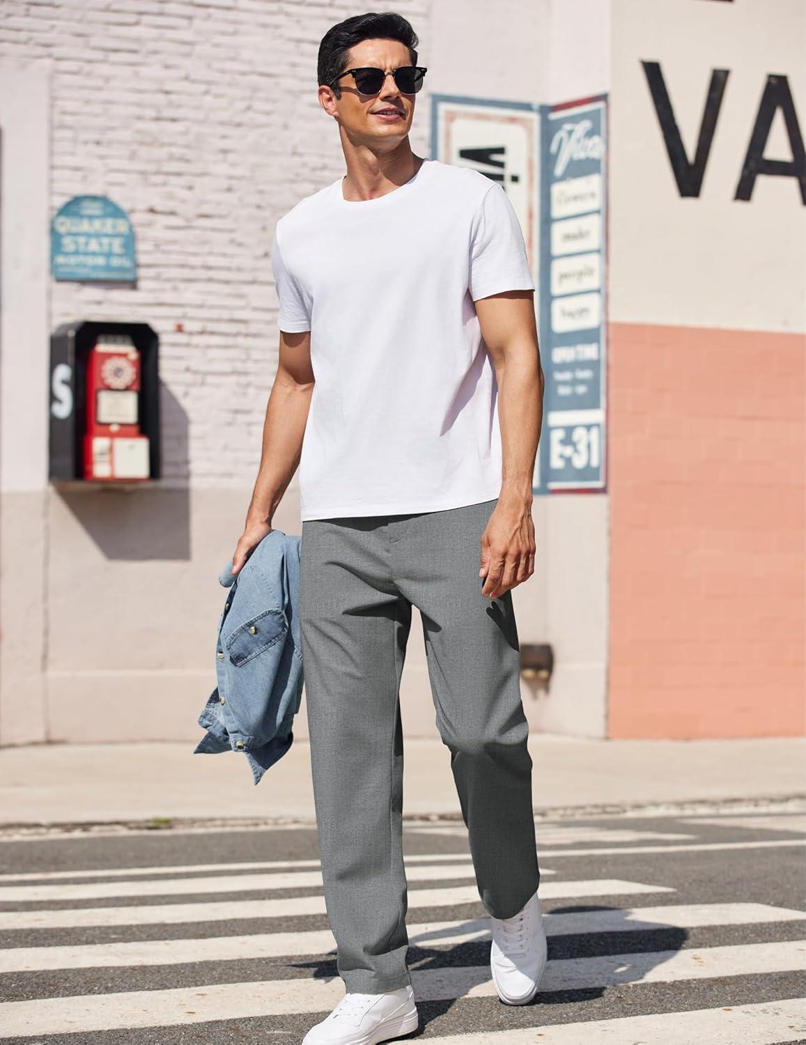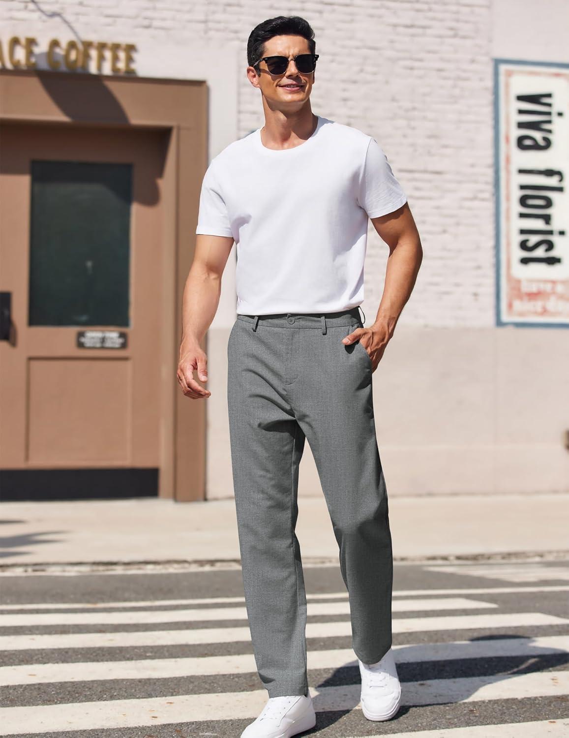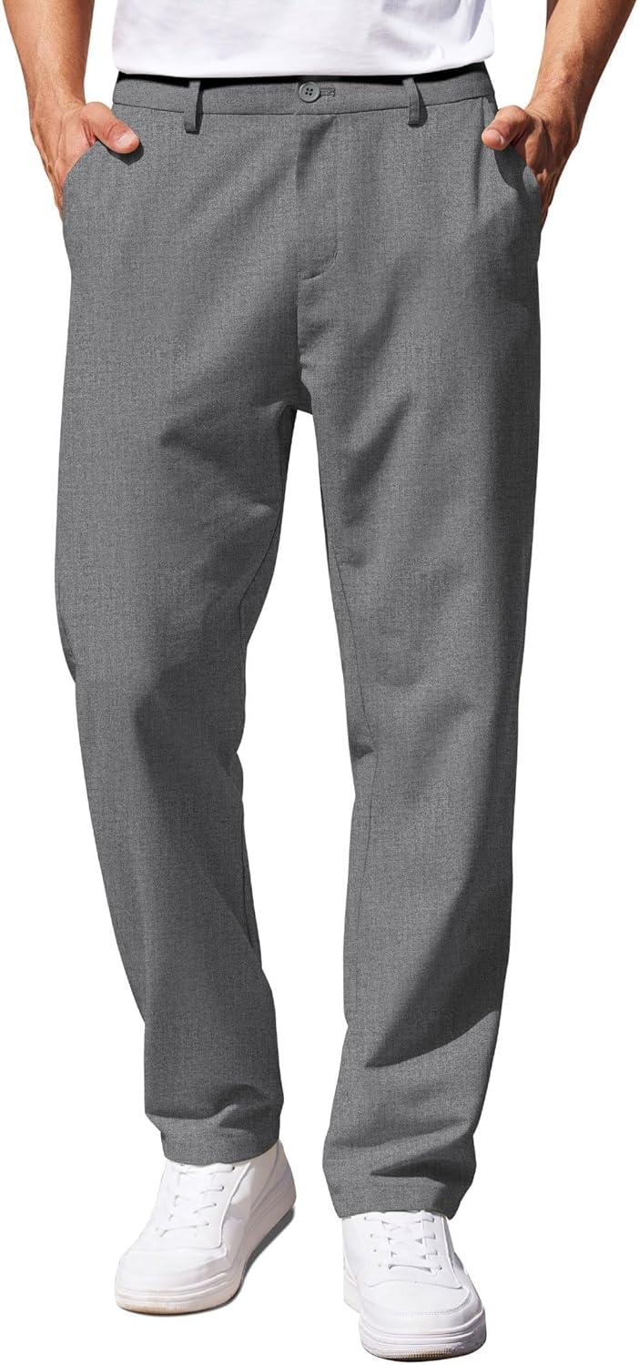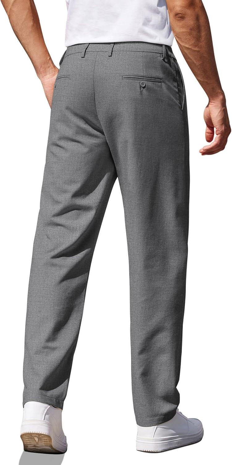COOFANDY Men’s Casual Pants Classic Fit Straight Legs Flat Front Twill Pants(Grey)