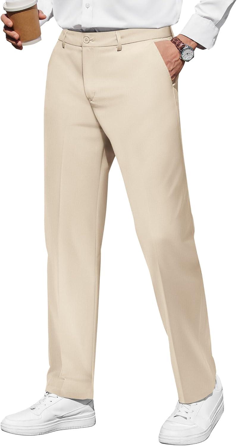 COOFANDY Men Classic Fit Dress Pant Casual Flat Front Pant Expandable Waist Suit Pant(A-khaki)