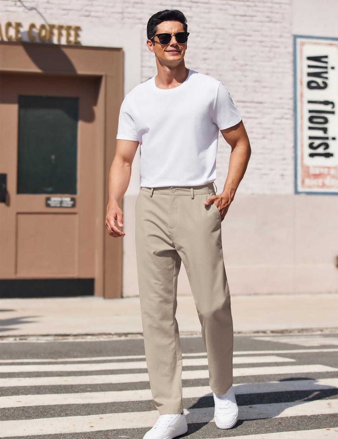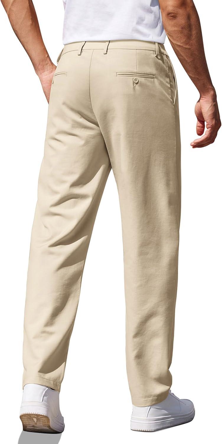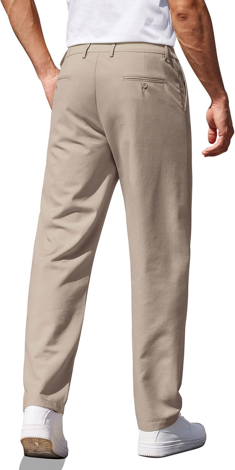 COOFANDY Men’s Casual Pants Classic Fit Straight Legs Flat Front Twill Pants(Light Khaki)