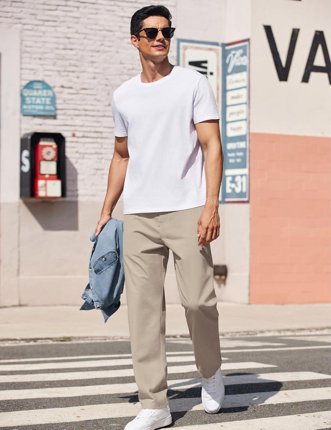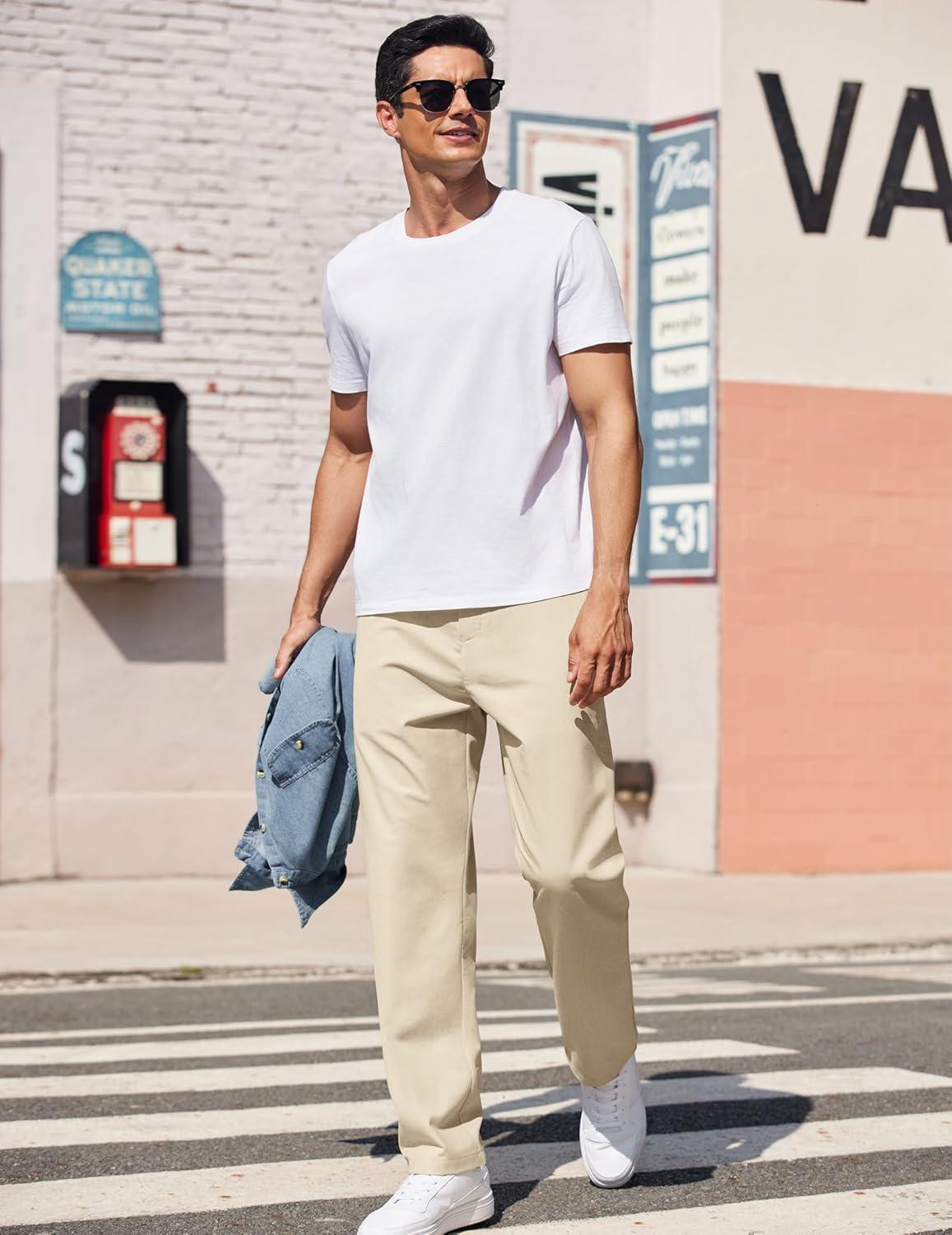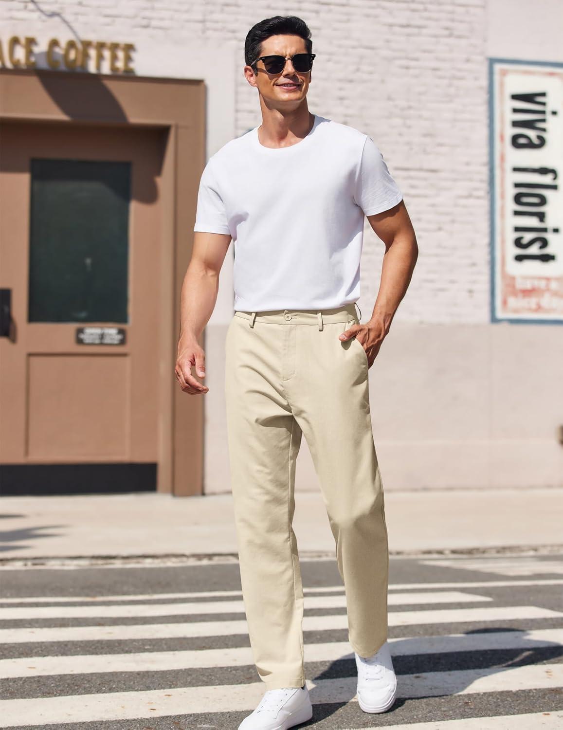 COOFANDY Men’s Casual Pants Classic Fit Straight Legs Flat Front Twill Pants(Light Khaki)