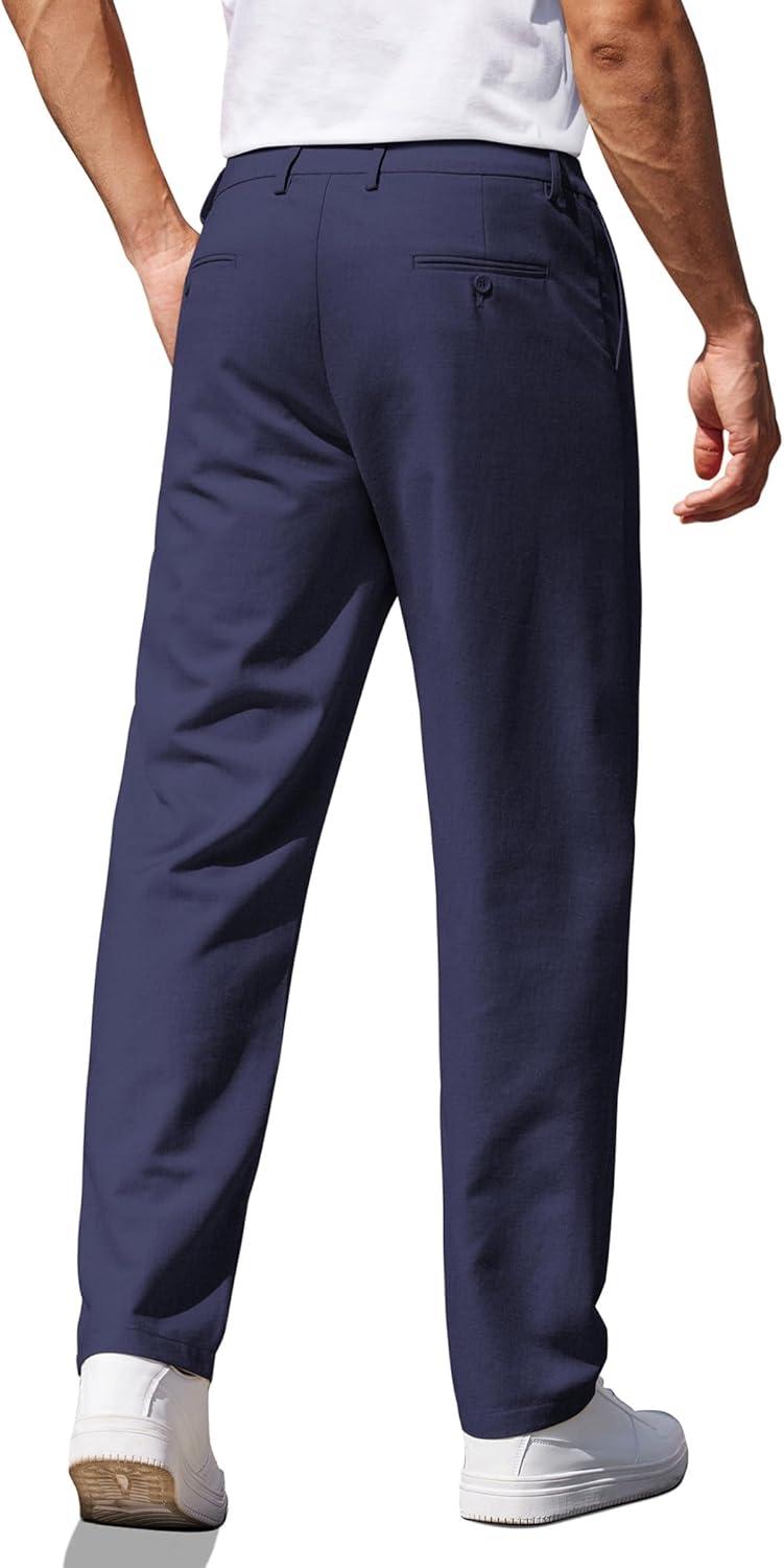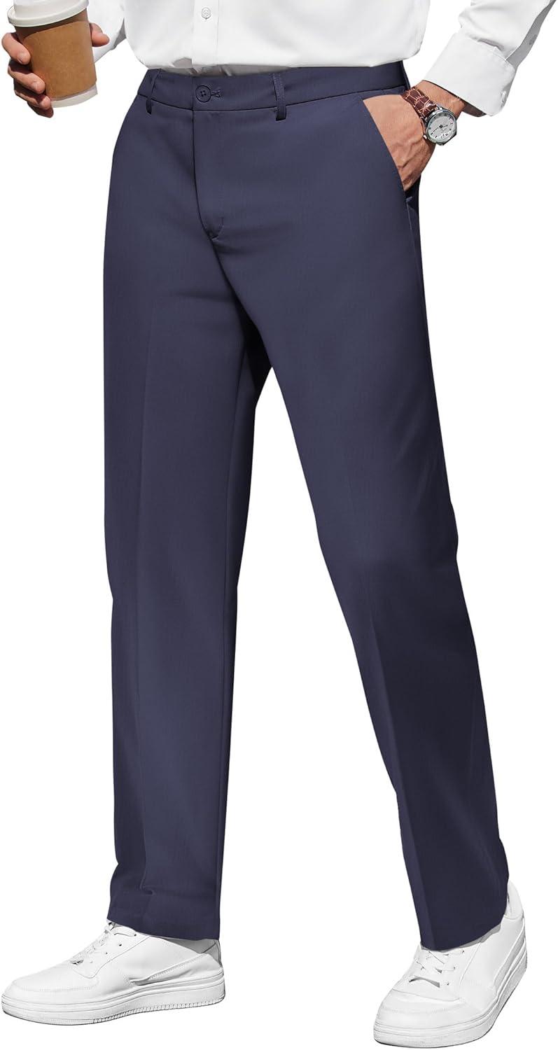 COOFANDY Men Classic Fit Dress Pant Casual Flat Front Pant Expandable Waist Suit Pant(Navy Blue)