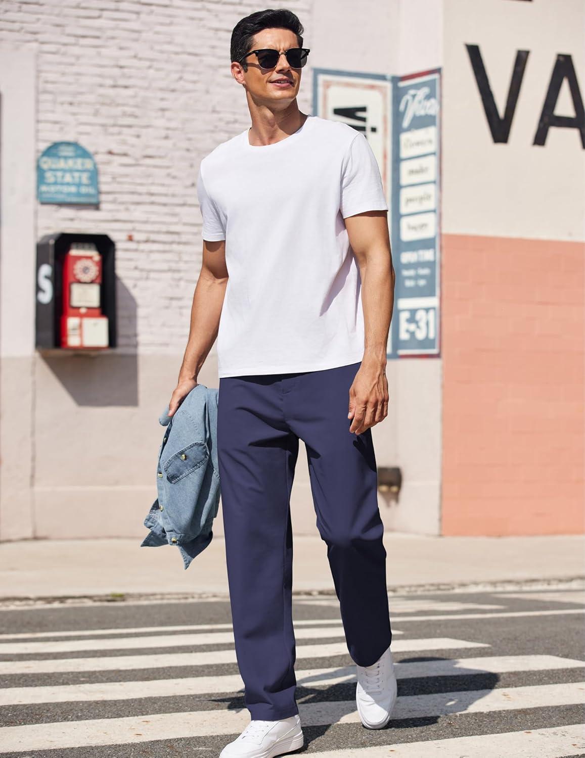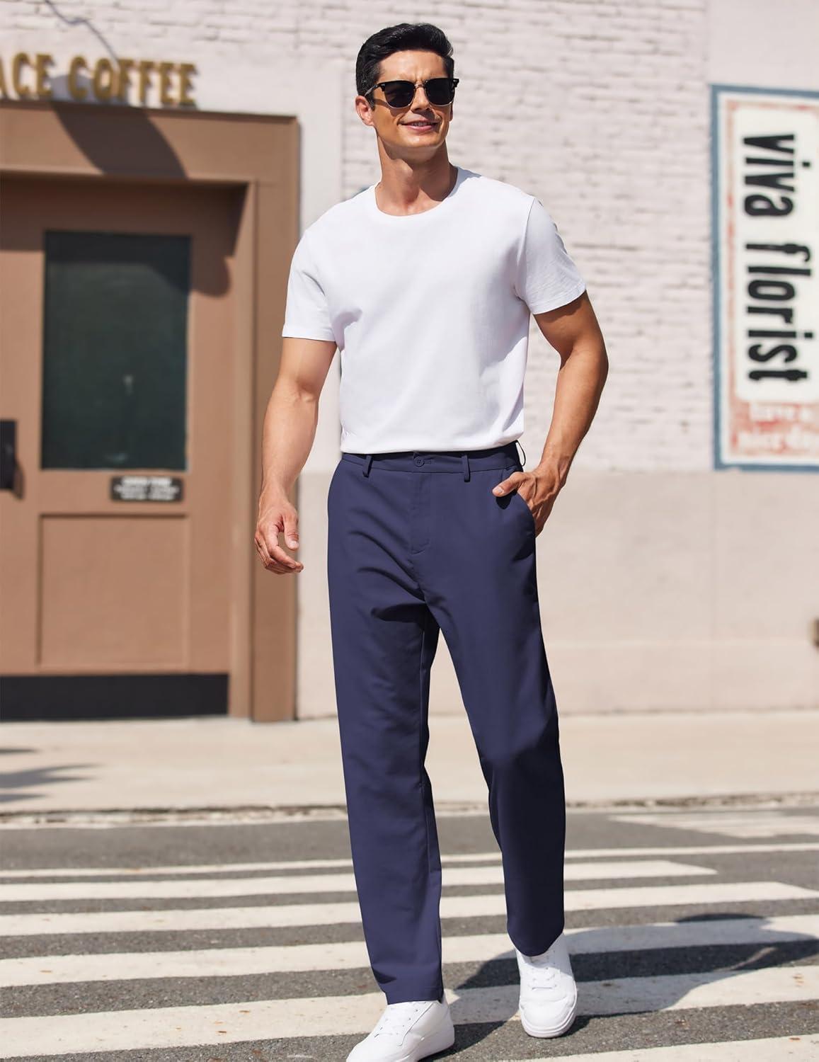 COOFANDY Men’s Casual Pants Classic Fit Straight Legs Flat Front Twill Pants(Navy)