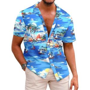 • COOFANDY Mens Hawaiian Shirts Short Sleeve Casual Button Down Tropical Beach Shirt(Sea Blue)