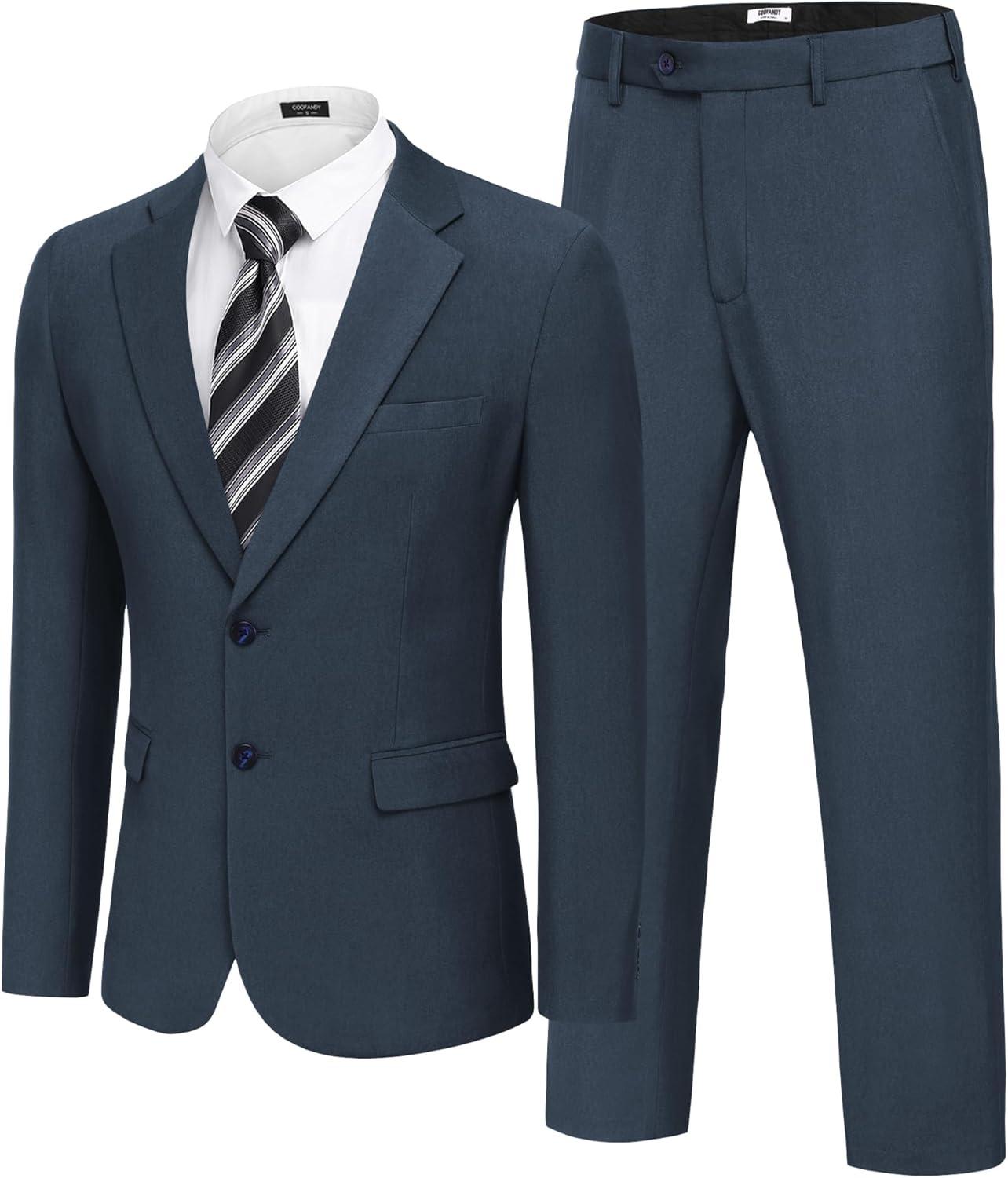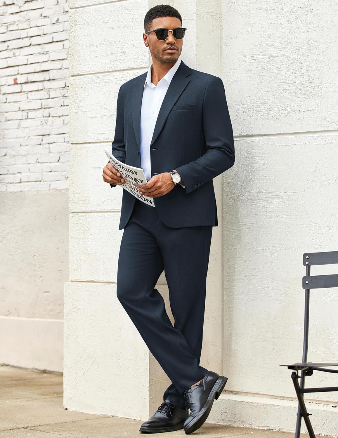 • COOFANDY Mens 2 Piece Suit Slim Fit 2 Button Formal Jacket Suits Pants Set for Wedding Business Prom(Dark Blue)