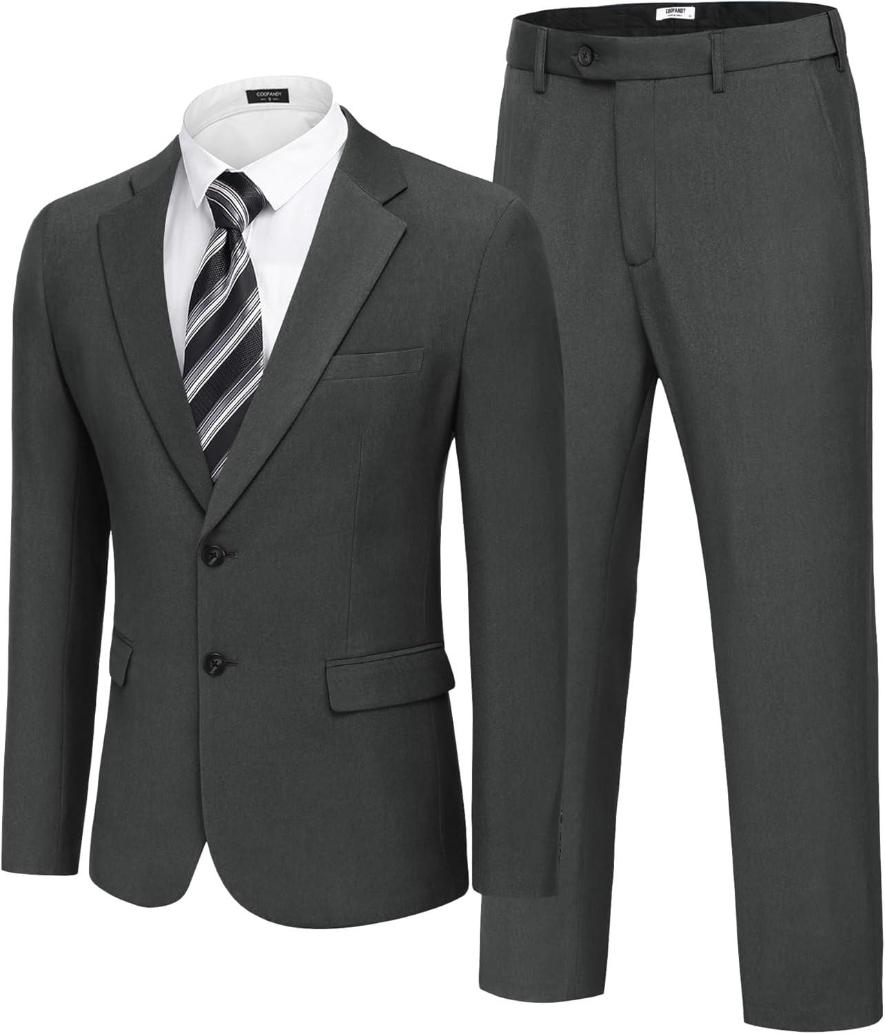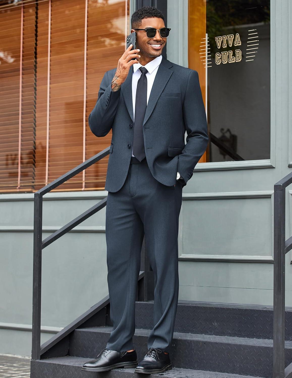 • COOFANDY Mens 2 Piece Suit Slim Fit 2 Button Formal Jacket Suits Pants Set for Wedding Business Prom(Dark Grey)