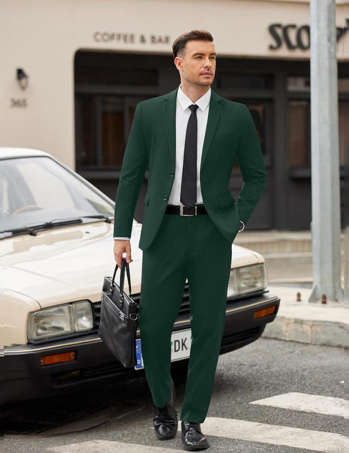 • COOFANDY Mens 2 Piece Suit Slim Fit 2 Button Formal Jacket Suits Pants Set for Wedding Business Prom(Green)