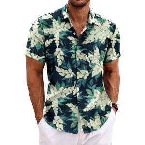 COOFANDY Men’s Hawaiian Shirt Short Sleeve Floral Button Down Shirts Tropical Holiday Beach Shirts(Sage Green – Leaf)