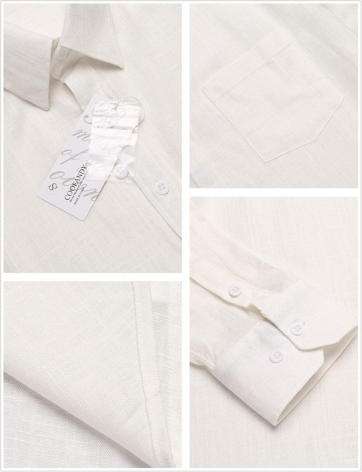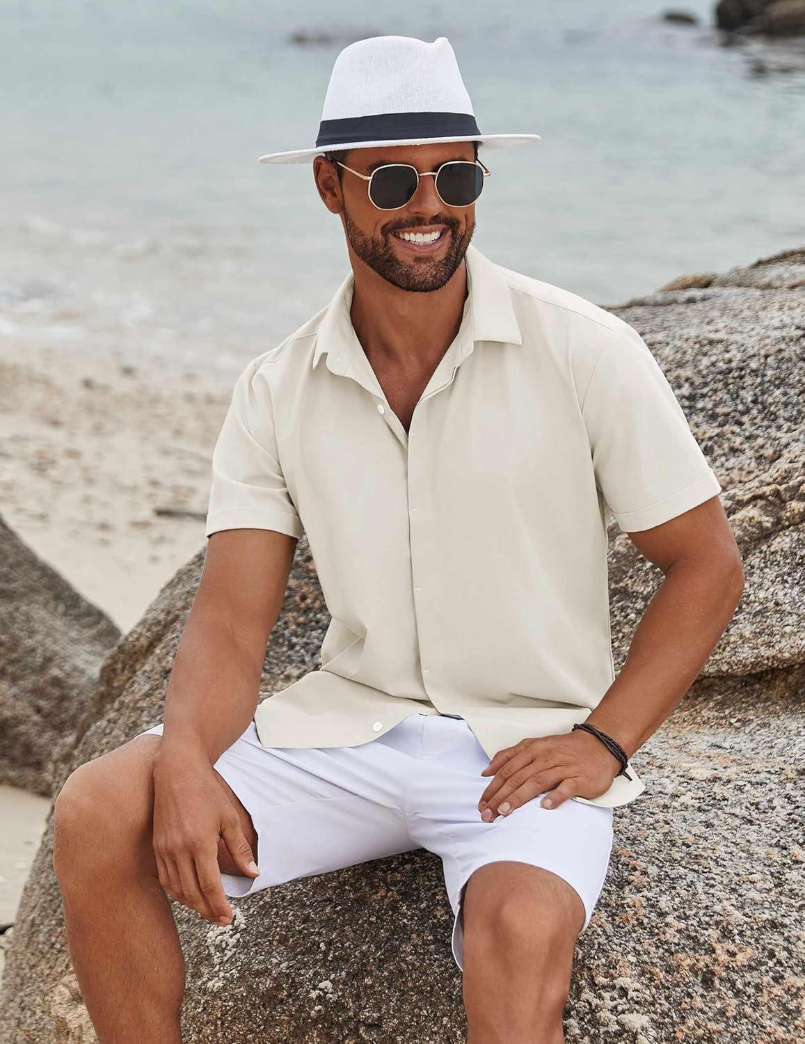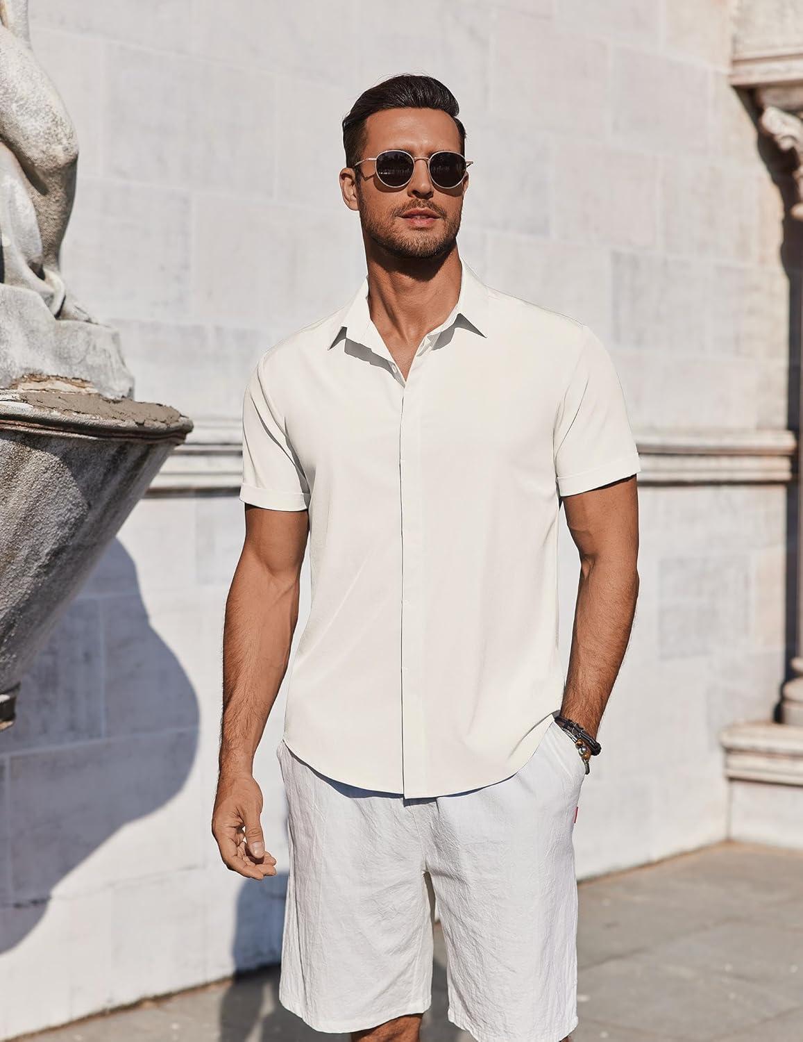 COOFANDY Mens Button Down Shirts Short Sleeve Casual Summer Beach Shirts for Men Vacation Wedding Linen Shirt(Khaki White)