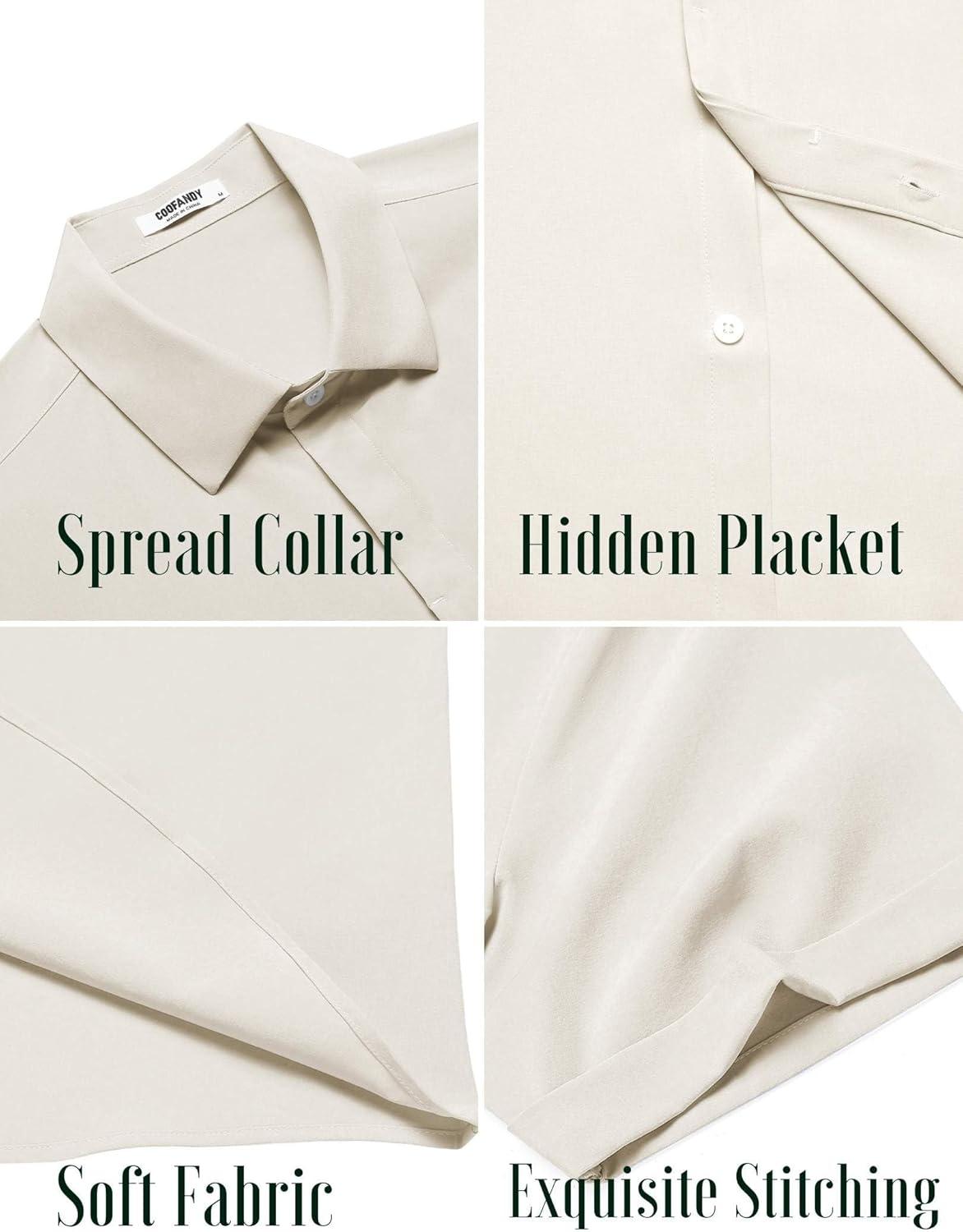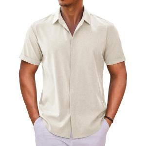COOFANDY Mens Button Down Shirts Short Sleeve Casual Summer Beach Shirts for Men Vacation Wedding Linen Shirt(Beige)