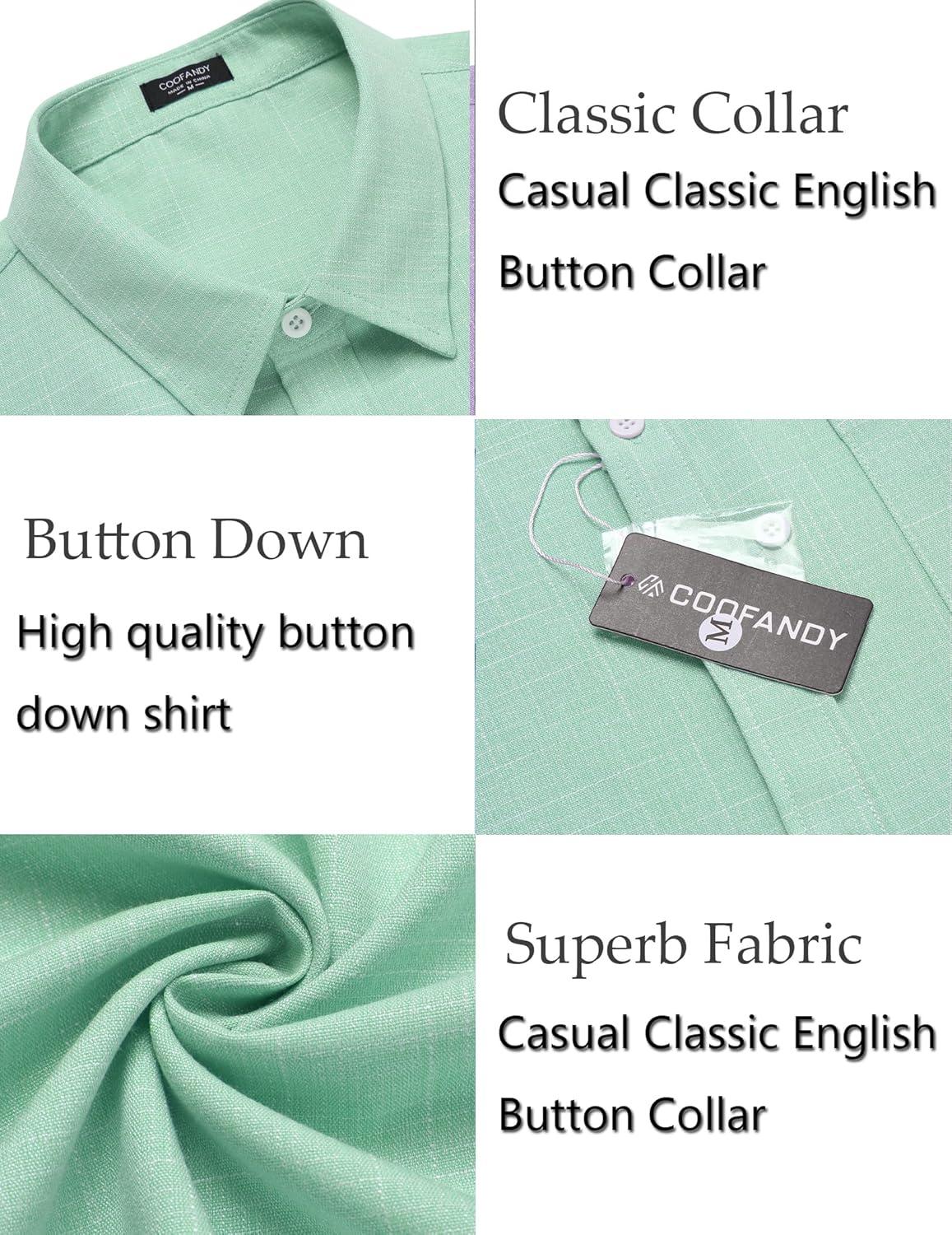 COOFANDY Mens Button Down Shirts Short Sleeve Casual Summer Beach Shirts for Men Vacation Wedding Linen Shirt(Evergreen)