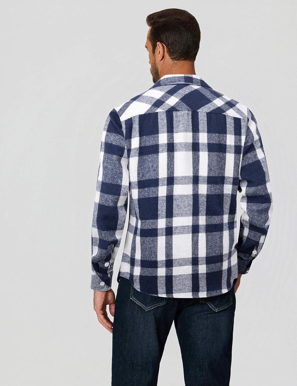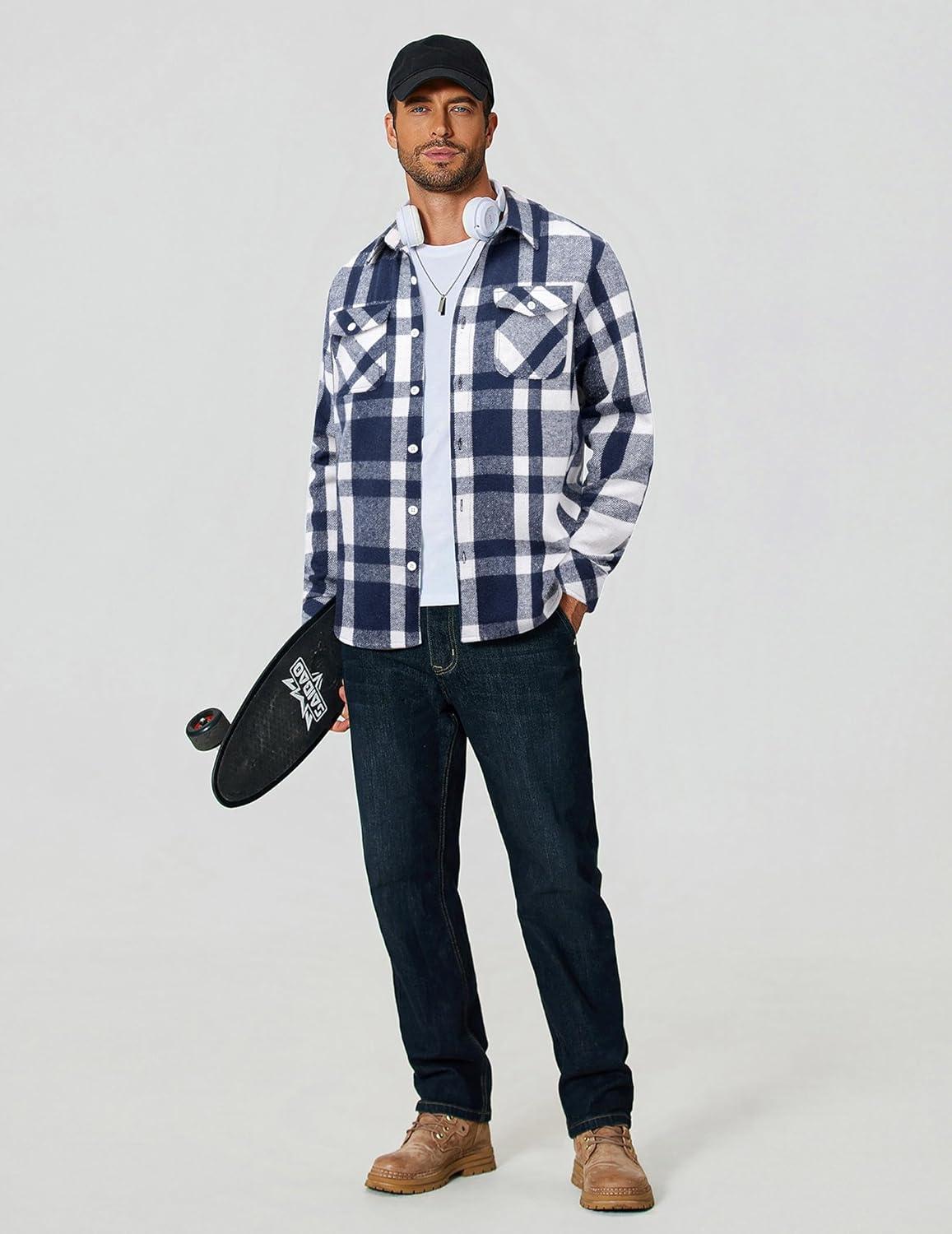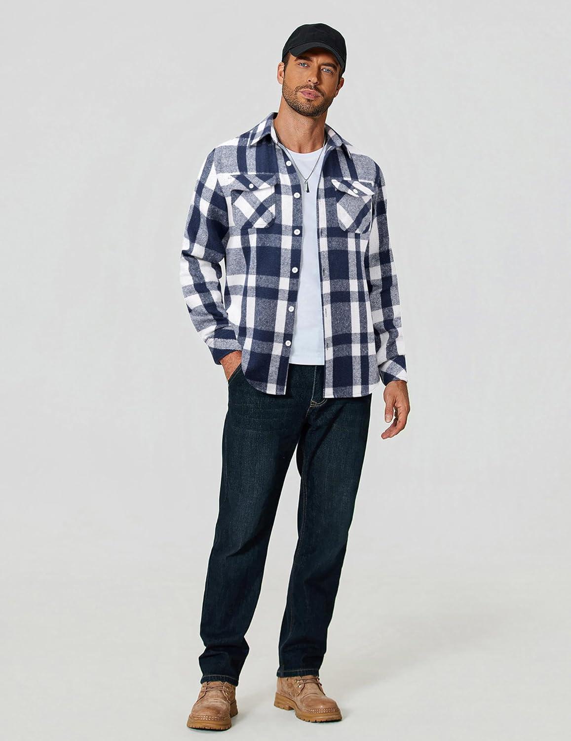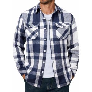 • COOFANDY Men Flannel Shirt Casual Button Down Shirt Jacket Long Sleeve Plaid Shirts with Pockets(Blue White)