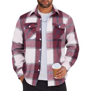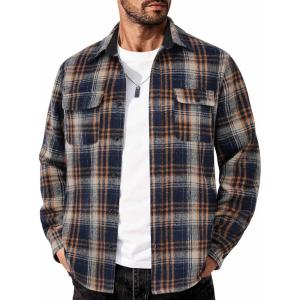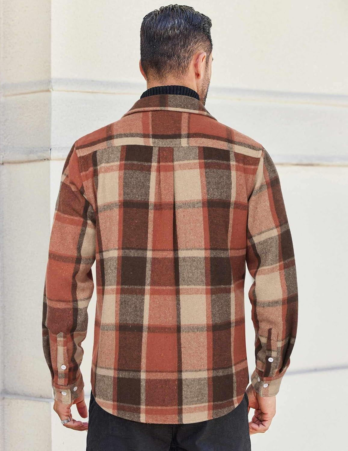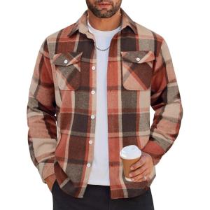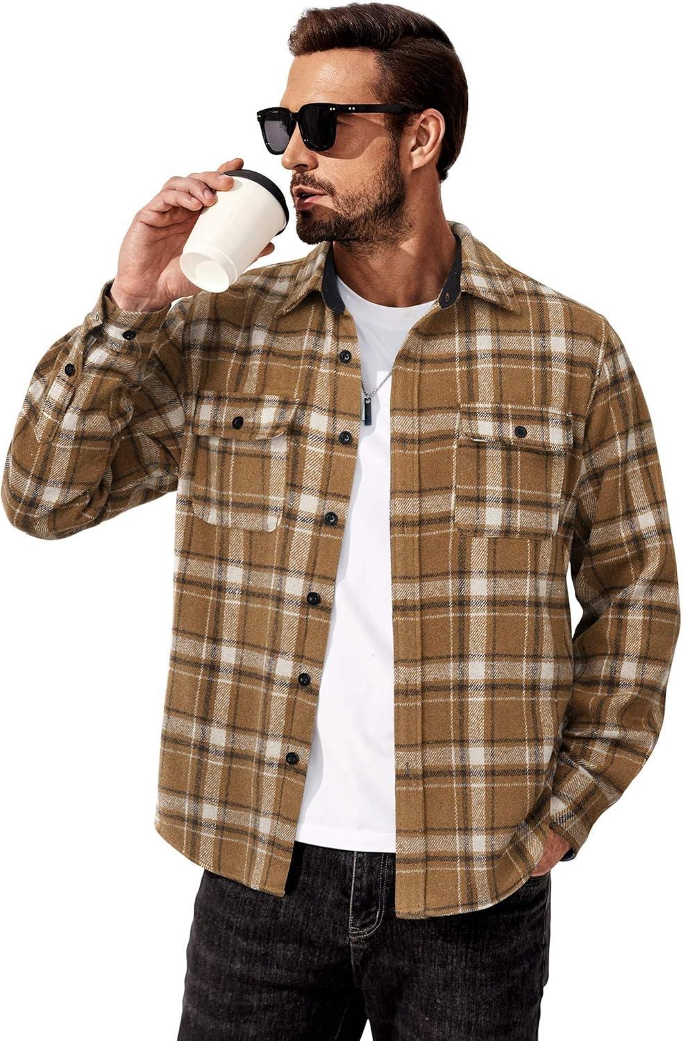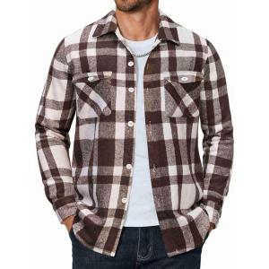 • COOFANDY Men Flannel Shirt Casual Button Down Shirt Jacket Long Sleeve Plaid Shirts with Pockets(Brown)