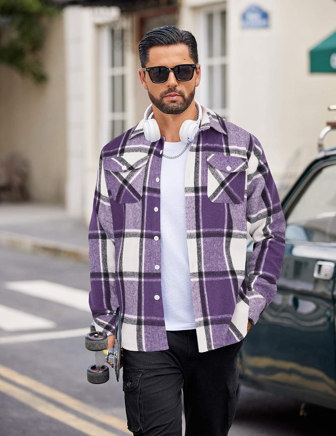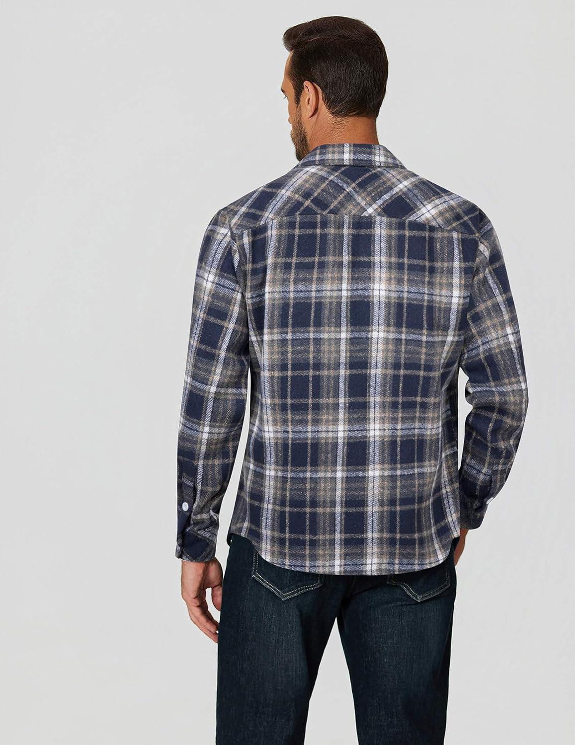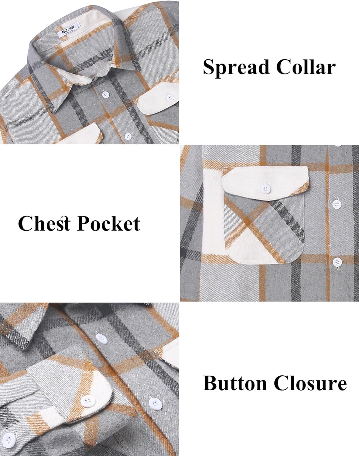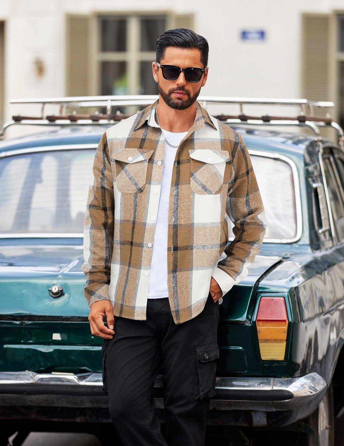 • COOFANDY Men Flannel Shirt Casual Button Down Shirt Jacket Long Sleeve Plaid Shirts with Pockets(Grey Brown)