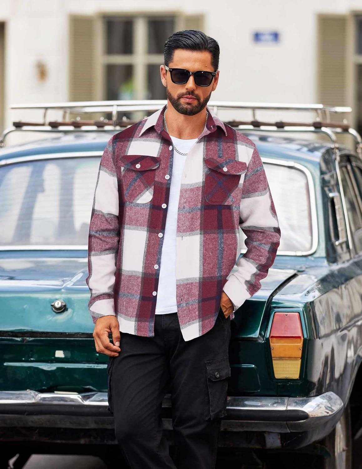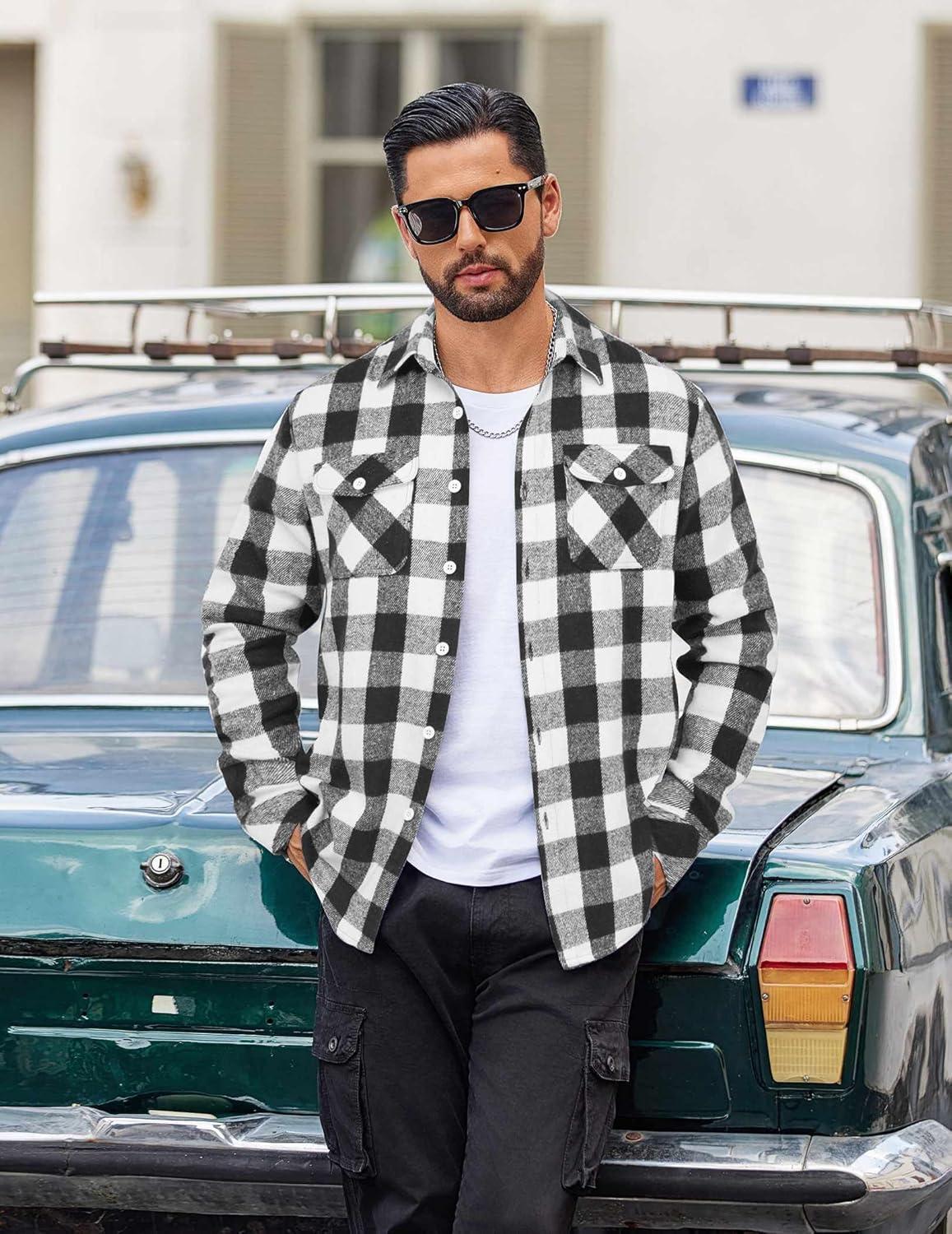 • COOFANDY Men Flannel Shirt Casual Button Down Shirt Jacket Long Sleeve Plaid Shirts with Pockets(Classic Black)