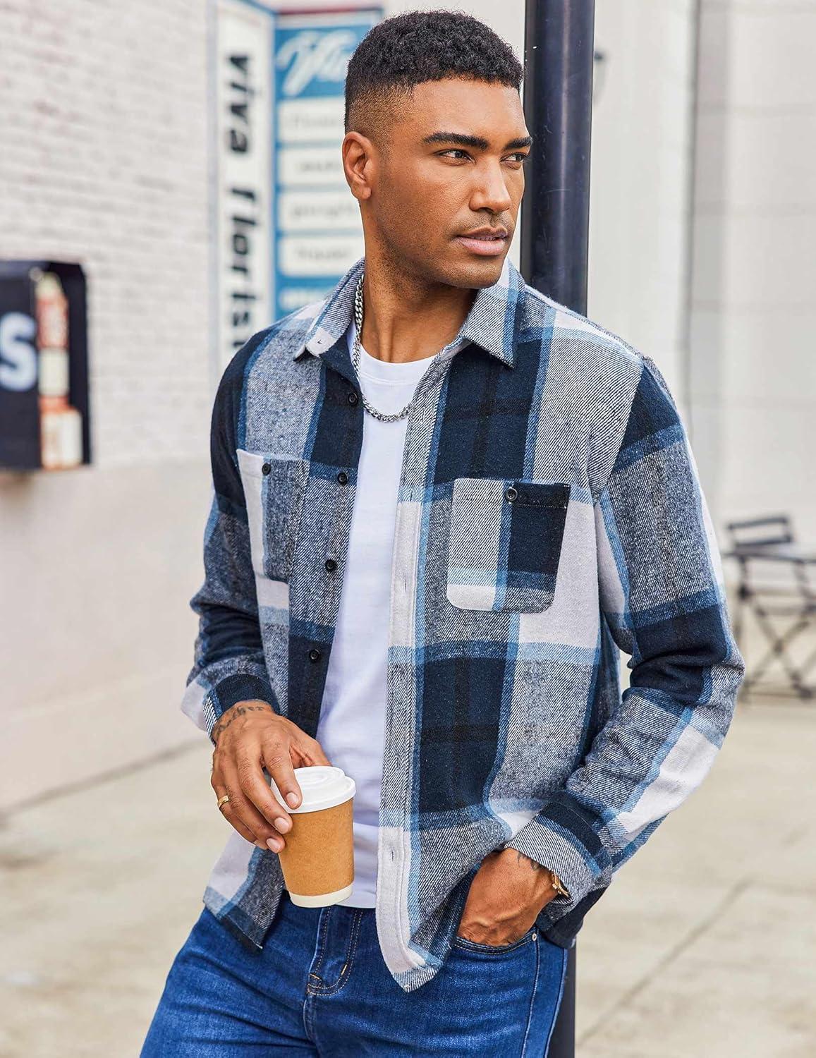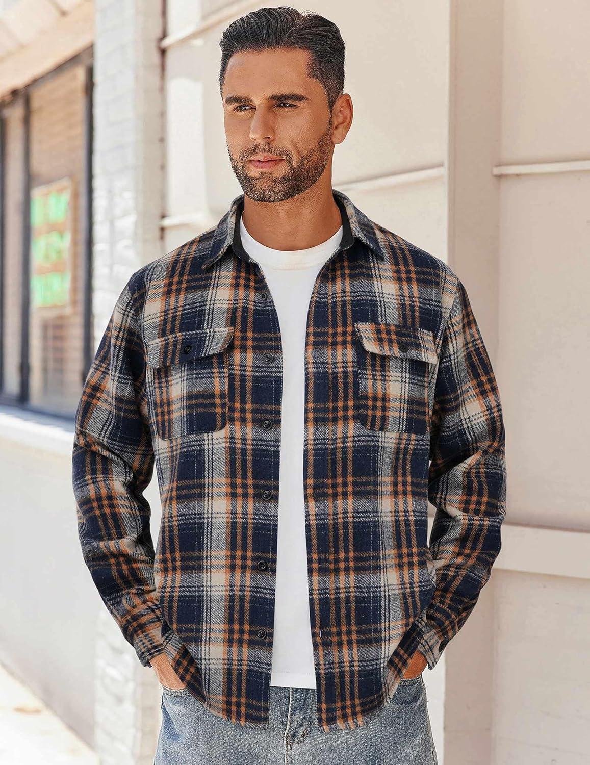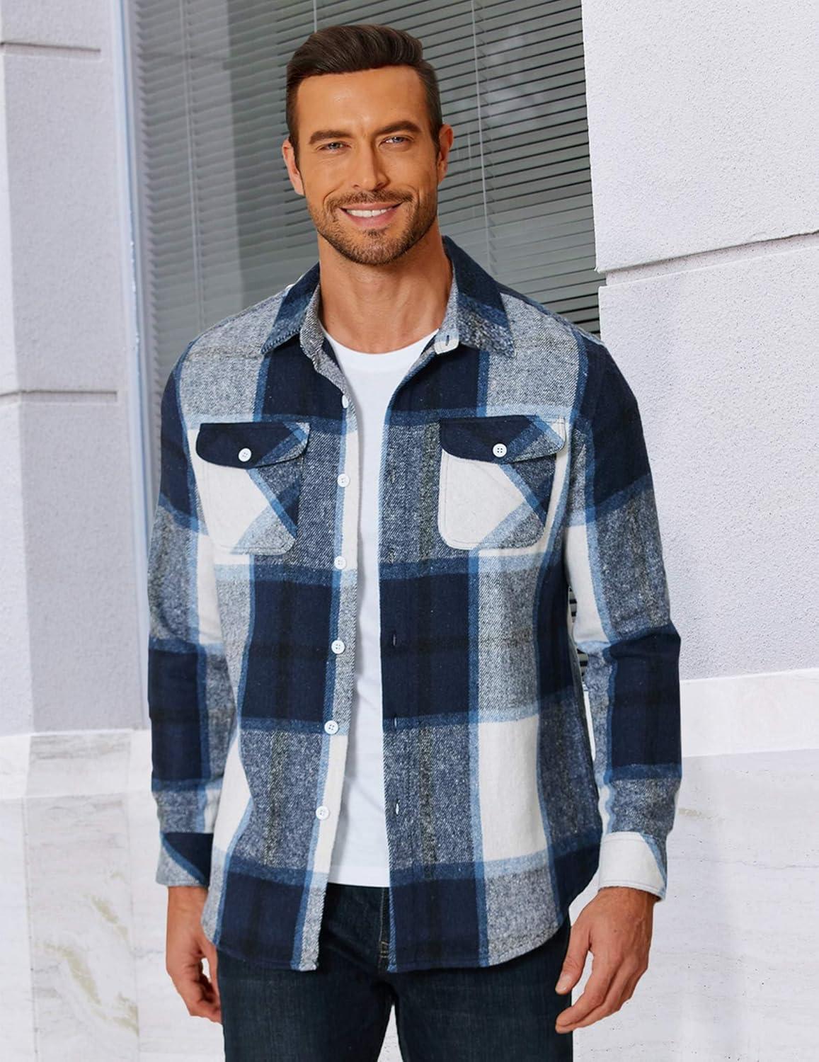 • COOFANDY Men Flannel Shirt Casual Button Down Shirt Jacket Long Sleeve Plaid Shirts with Pockets(Blue Plaid)