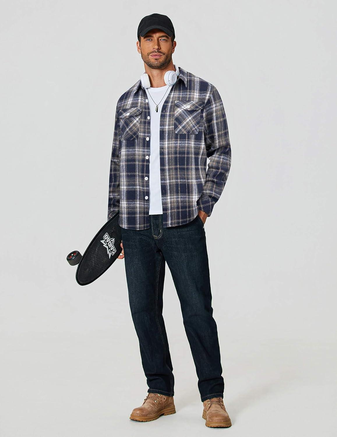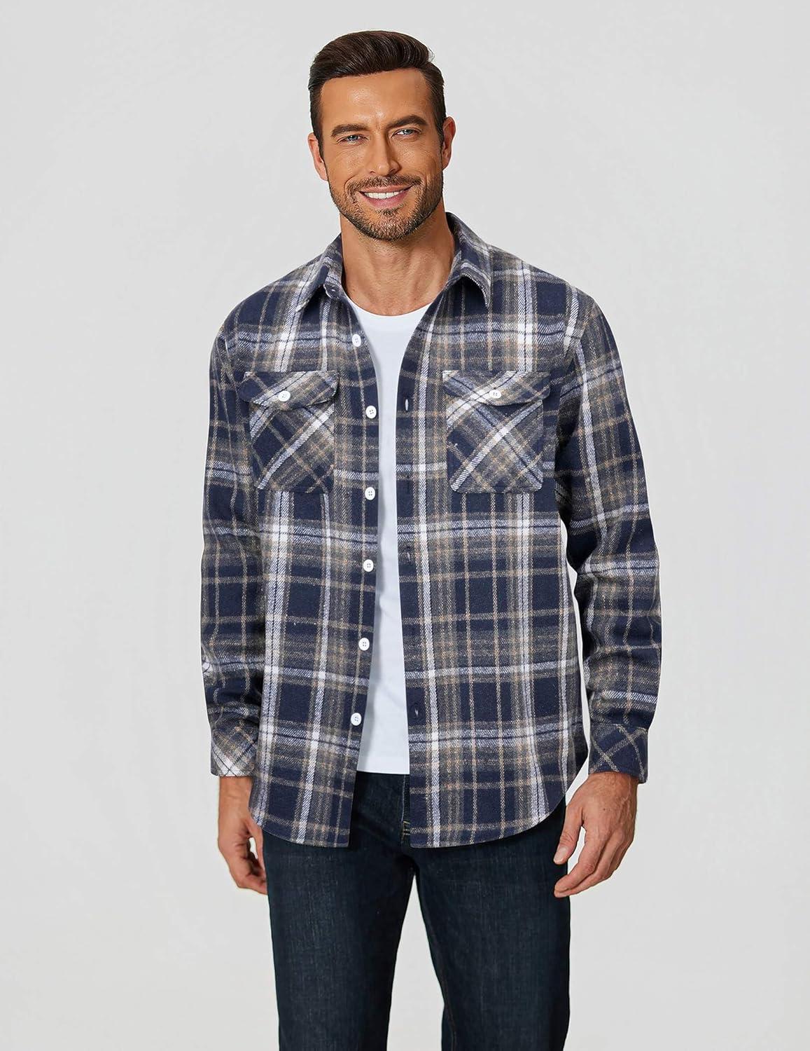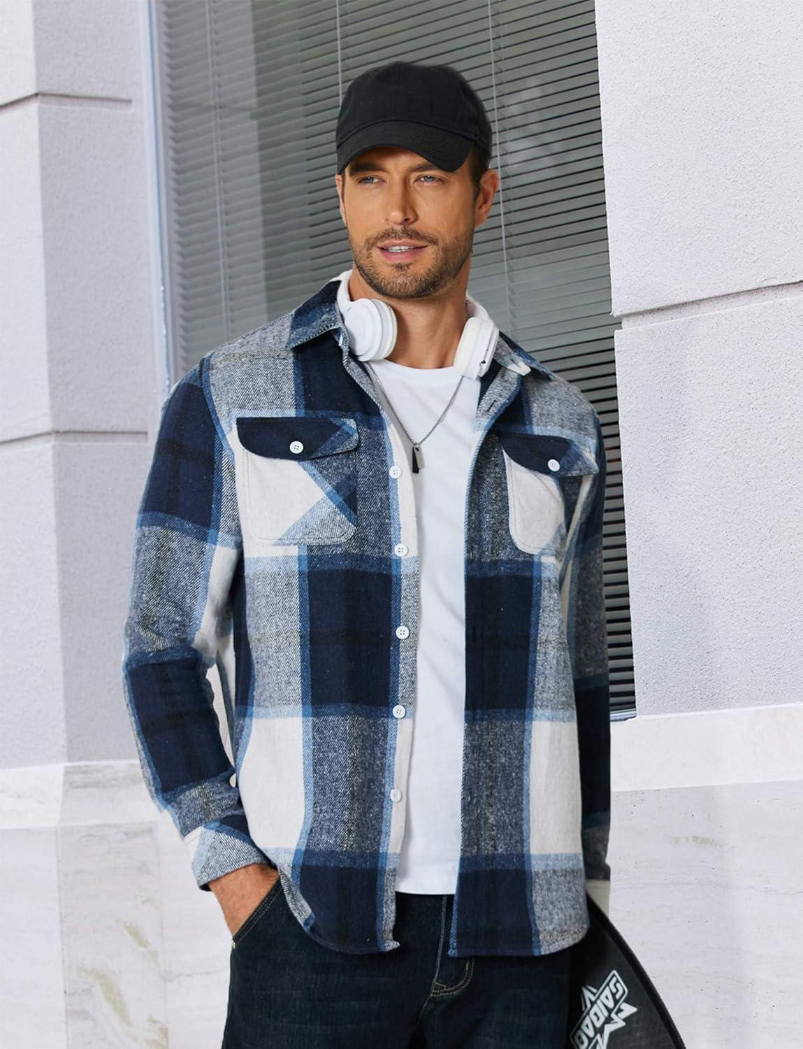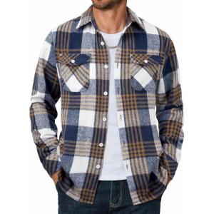 • COOFANDY Men Flannel Shirt Casual Button Down Shirt Jacket Long Sleeve Plaid Shirts with Pockets(Blue Plaid)