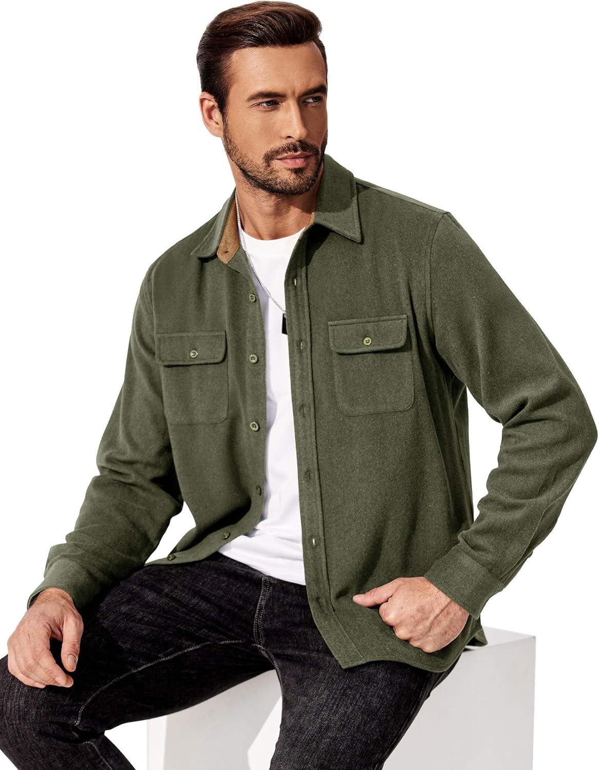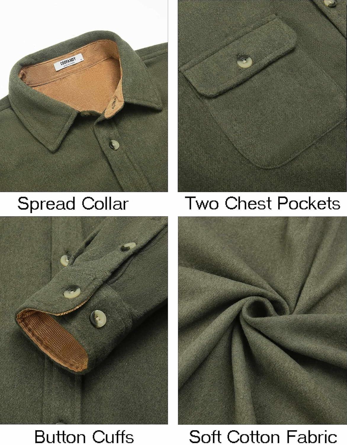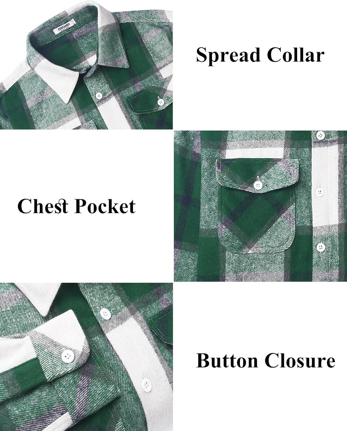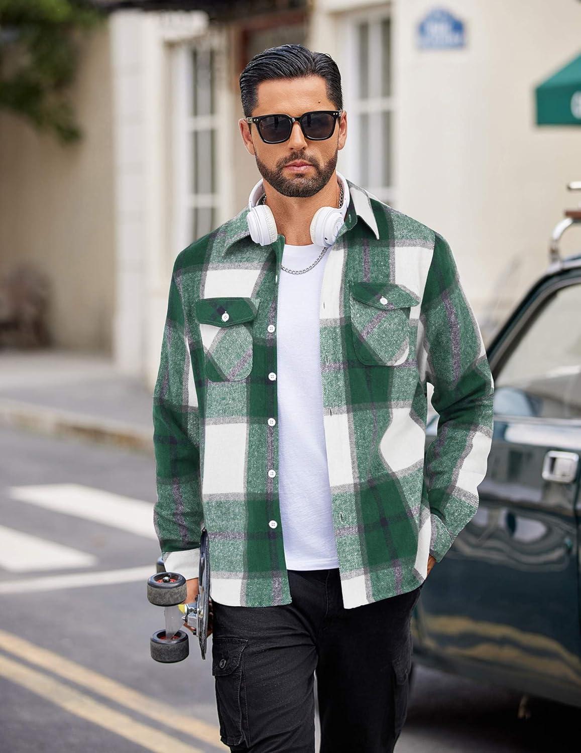 • COOFANDY Men Flannel Shirt Casual Button Down Shirt Jacket Long Sleeve Plaid Shirts with Pockets(Green)