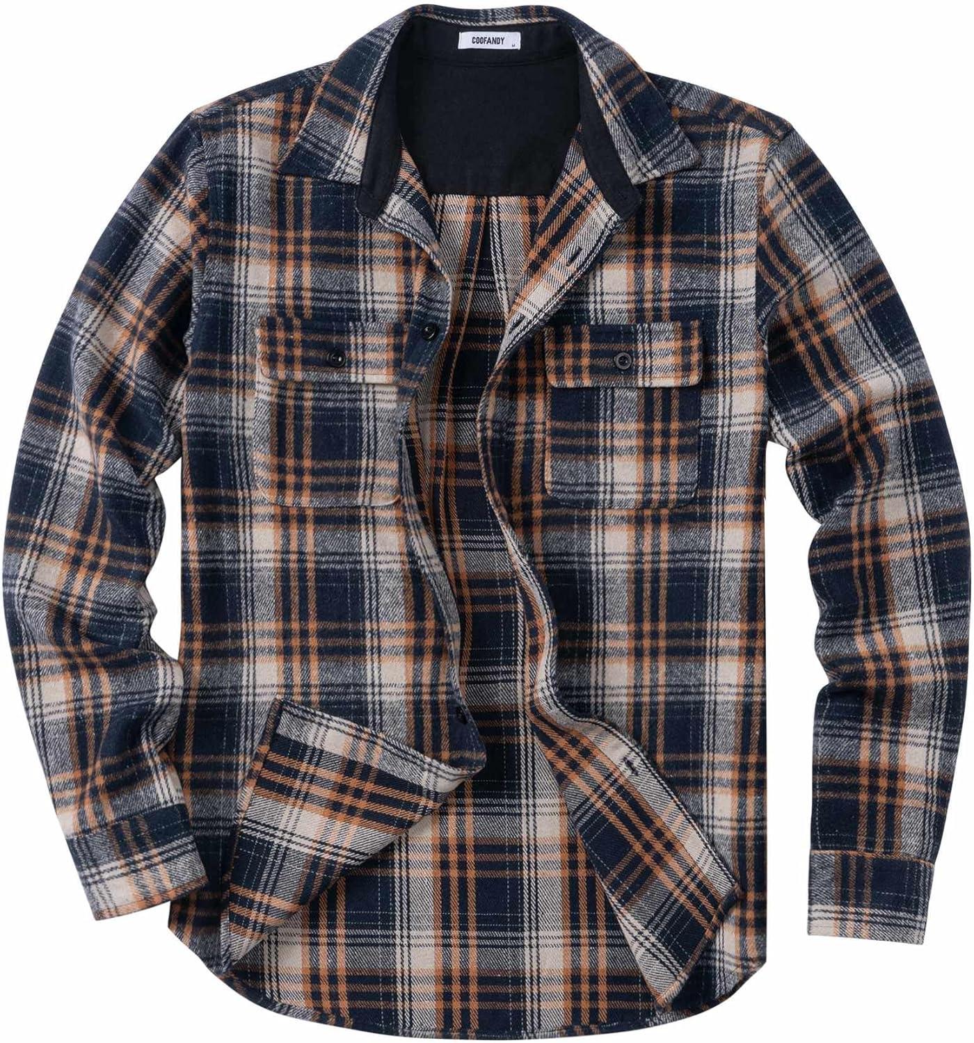 • COOFANDY Men Flannel Shirt Casual Button Down Shirt Jacket Long Sleeve Plaid Shirts with Pockets(Dark Blue)