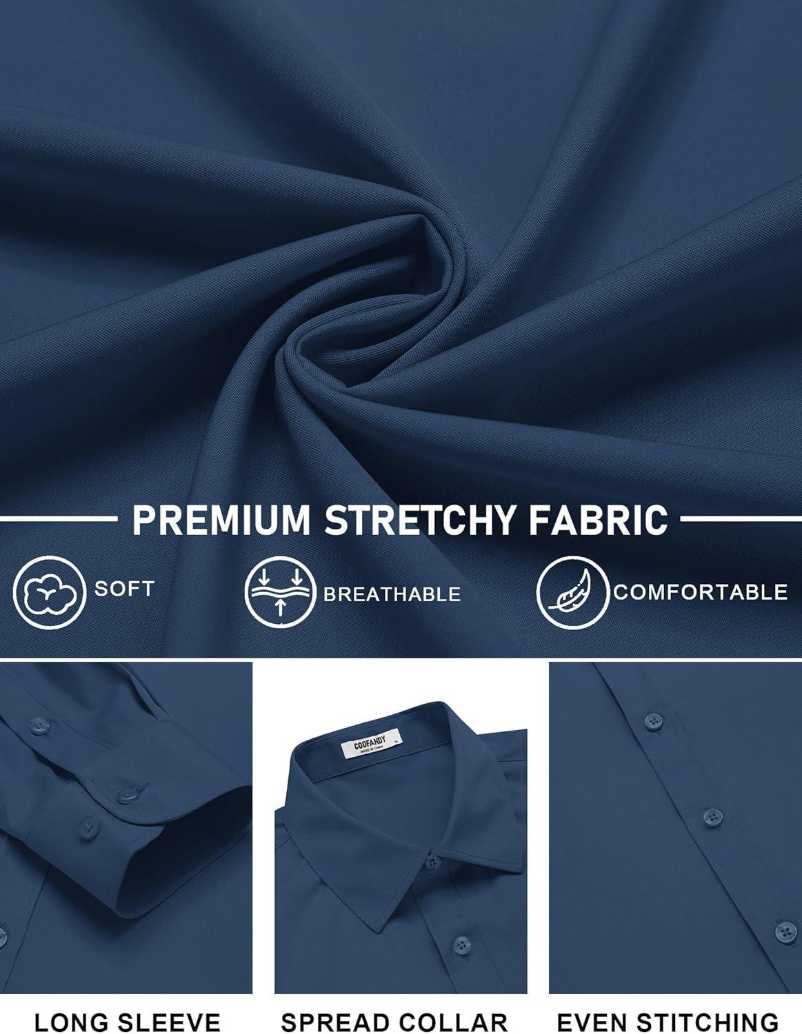COOFANDY Mens Dress Shirts Wrinkle Free Long Sleeve Button Down Shirts Formal Business Shirt(Navy)