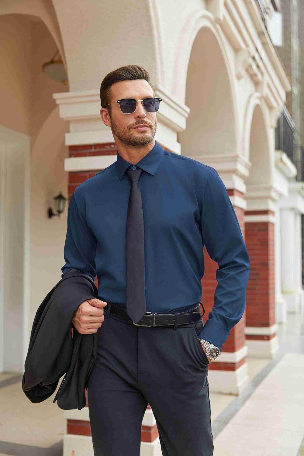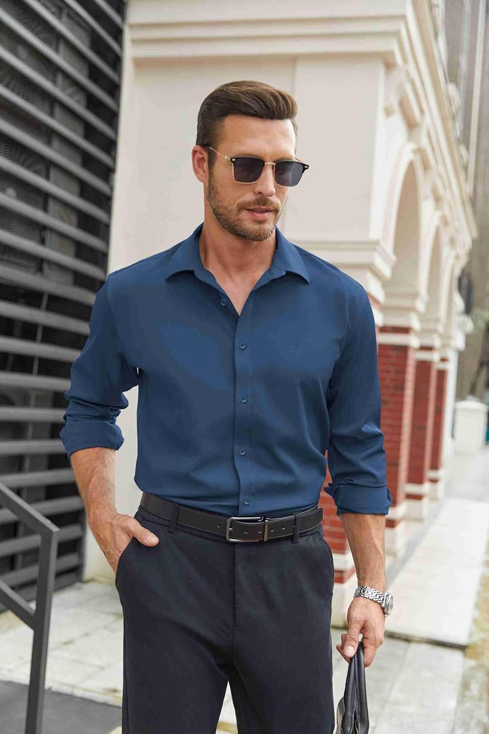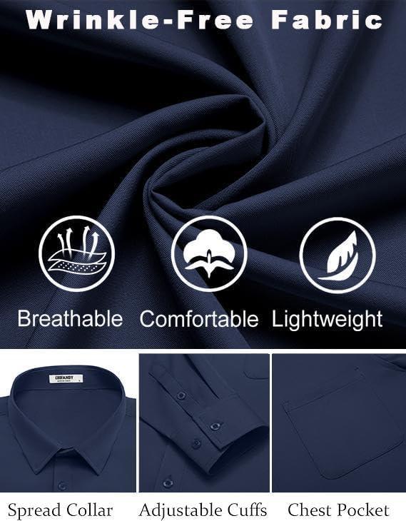 • COOFANDY Mens Dress Shirts Wrinkle Free Long Sleeve Button Down Shirts Formal Business Shirt(Navy)