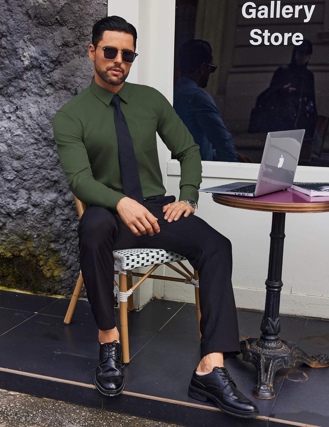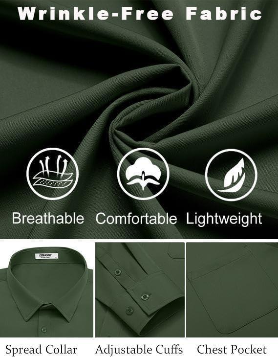 • COOFANDY Mens Dress Shirts Wrinkle Free Long Sleeve Button Down Shirts Formal Business Shirt(Olive Green)